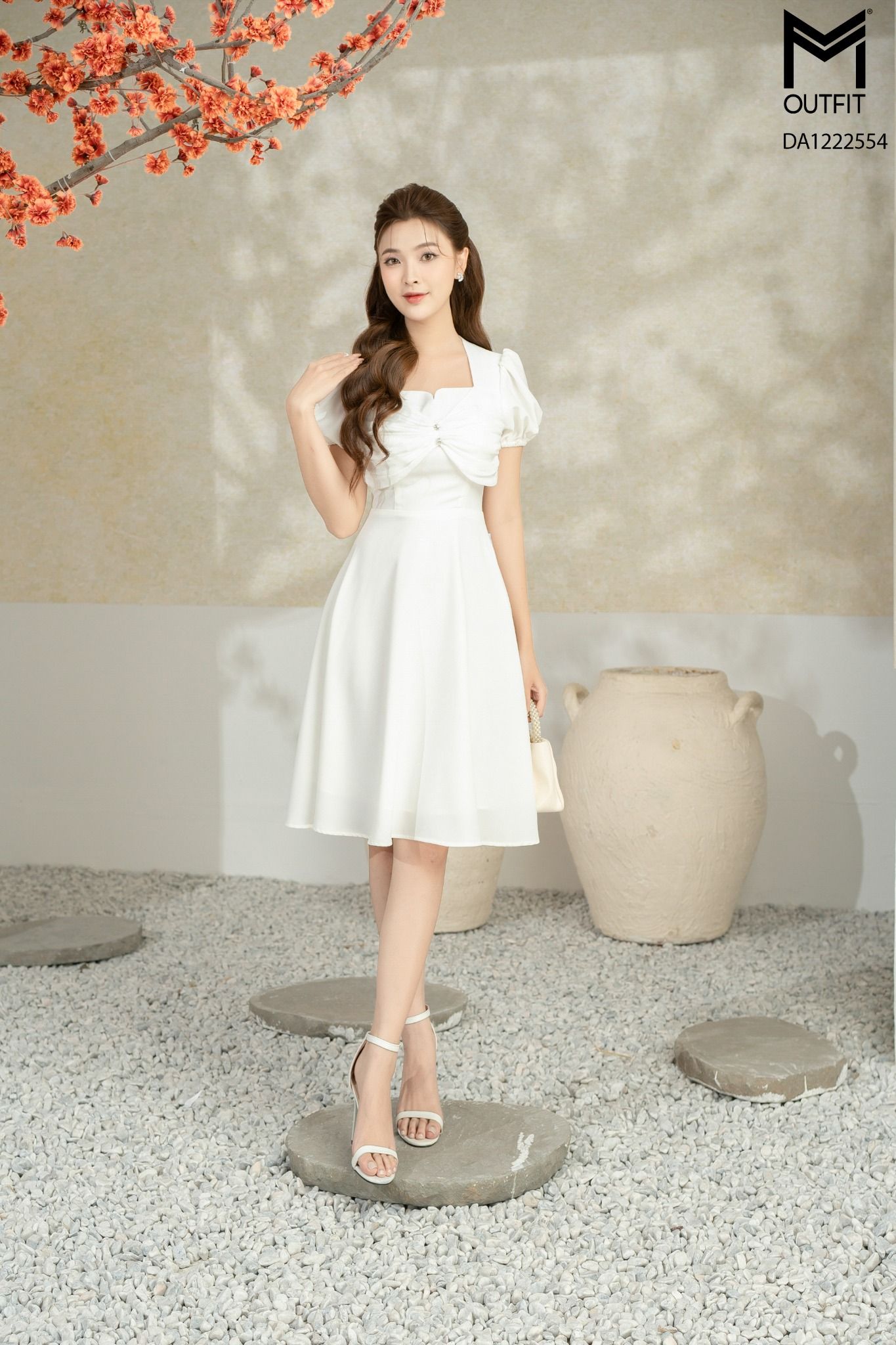 | Đặc điểm | Đầm dáng xòe, nơ bong nhún ngực |