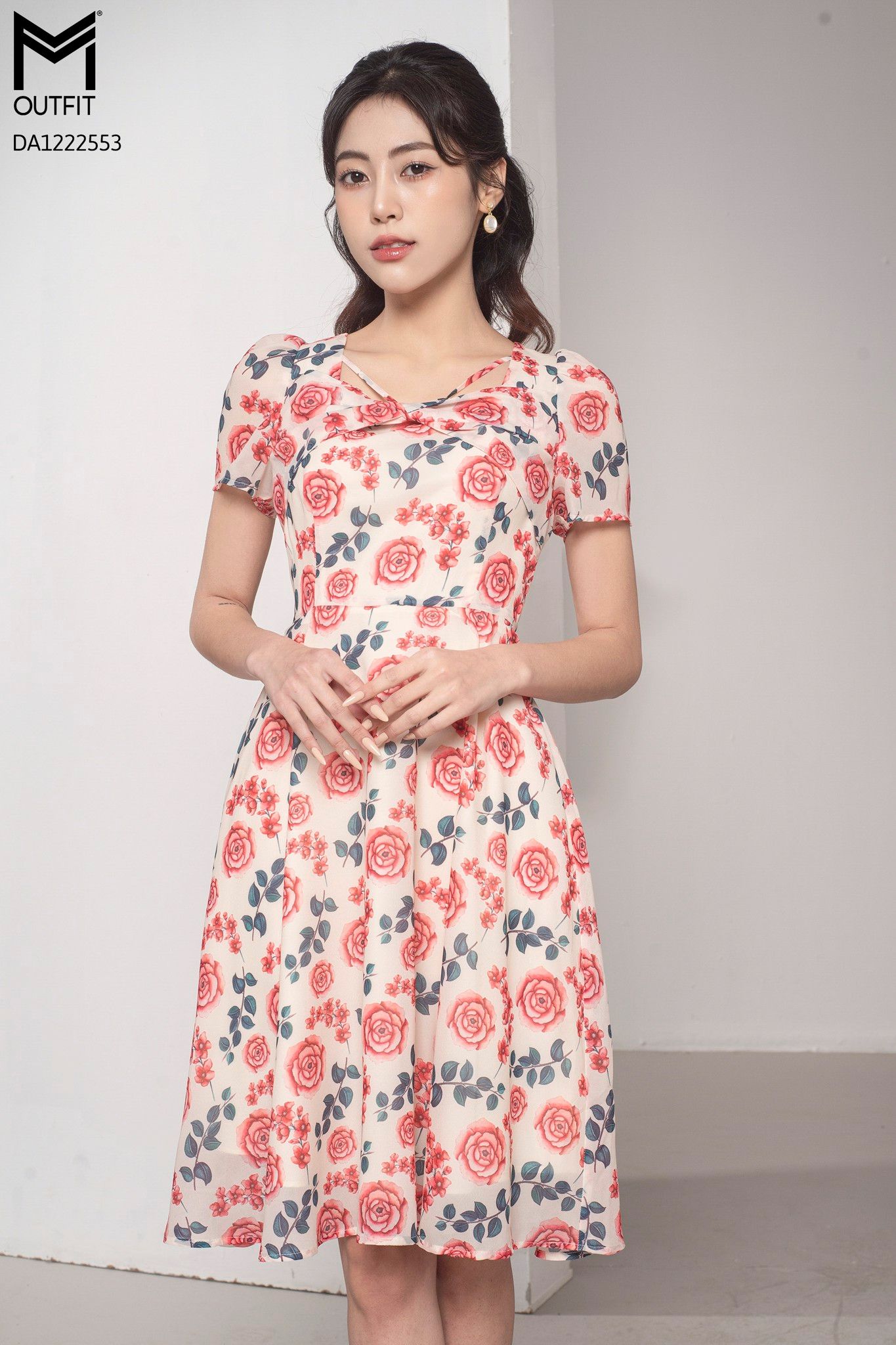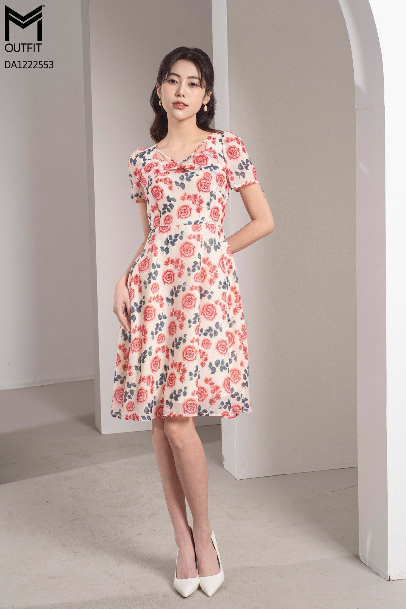 Đầm dáng xòe, tà bong xoắn ngực