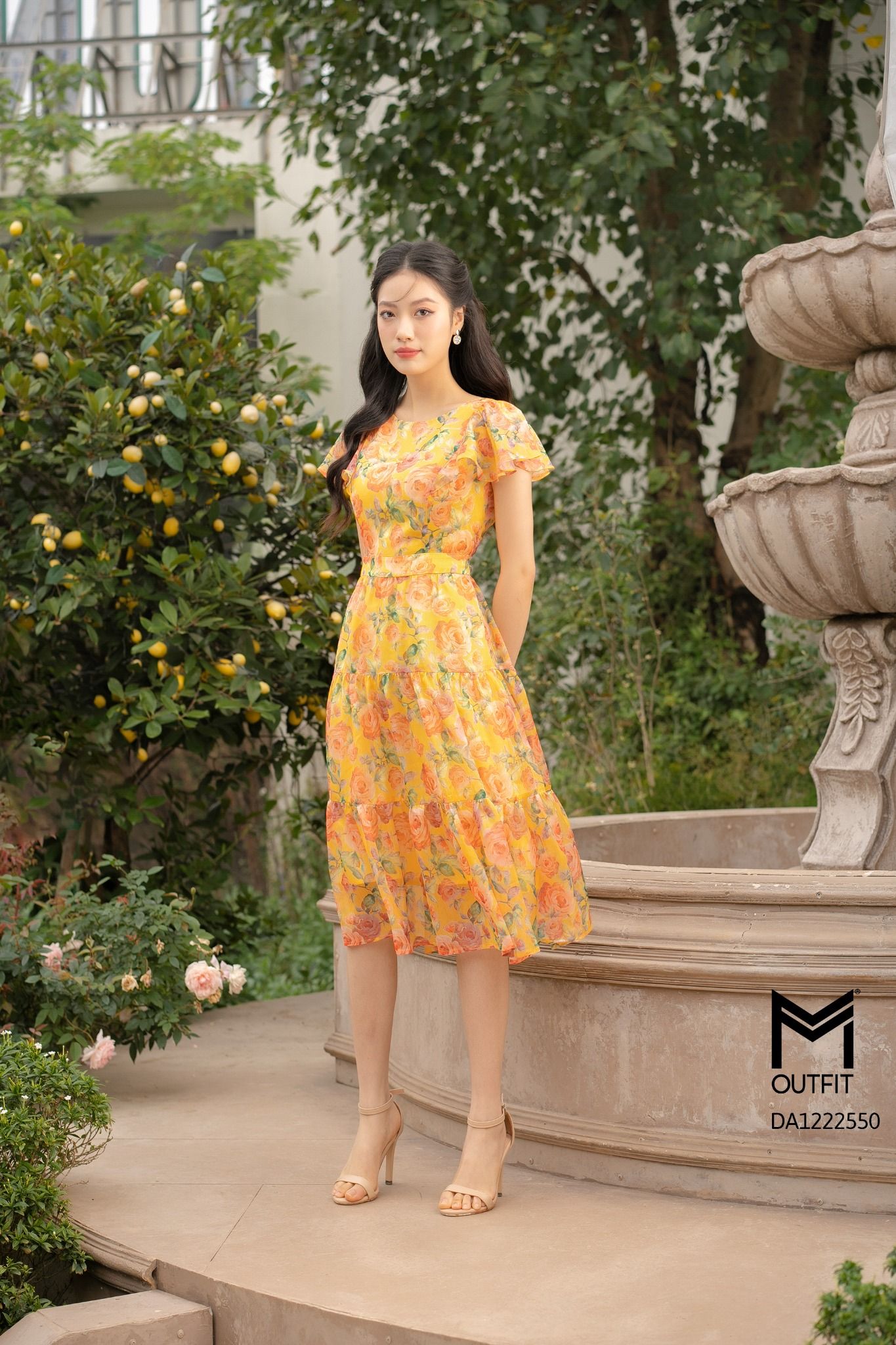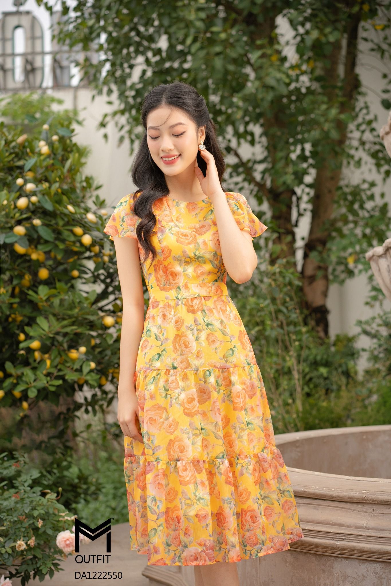 | Đặc điểm | Đầm dáng xòe, tay bèo, tùng nhún 3 tầng |