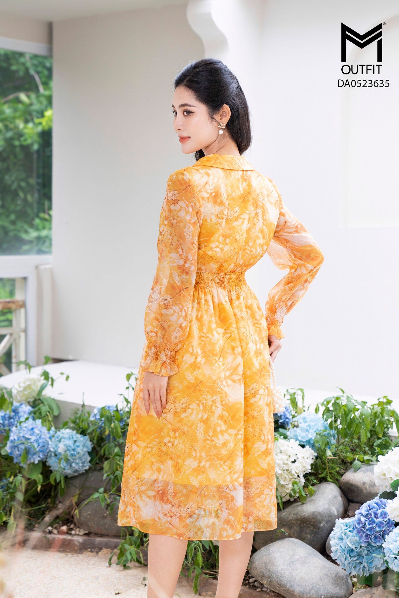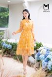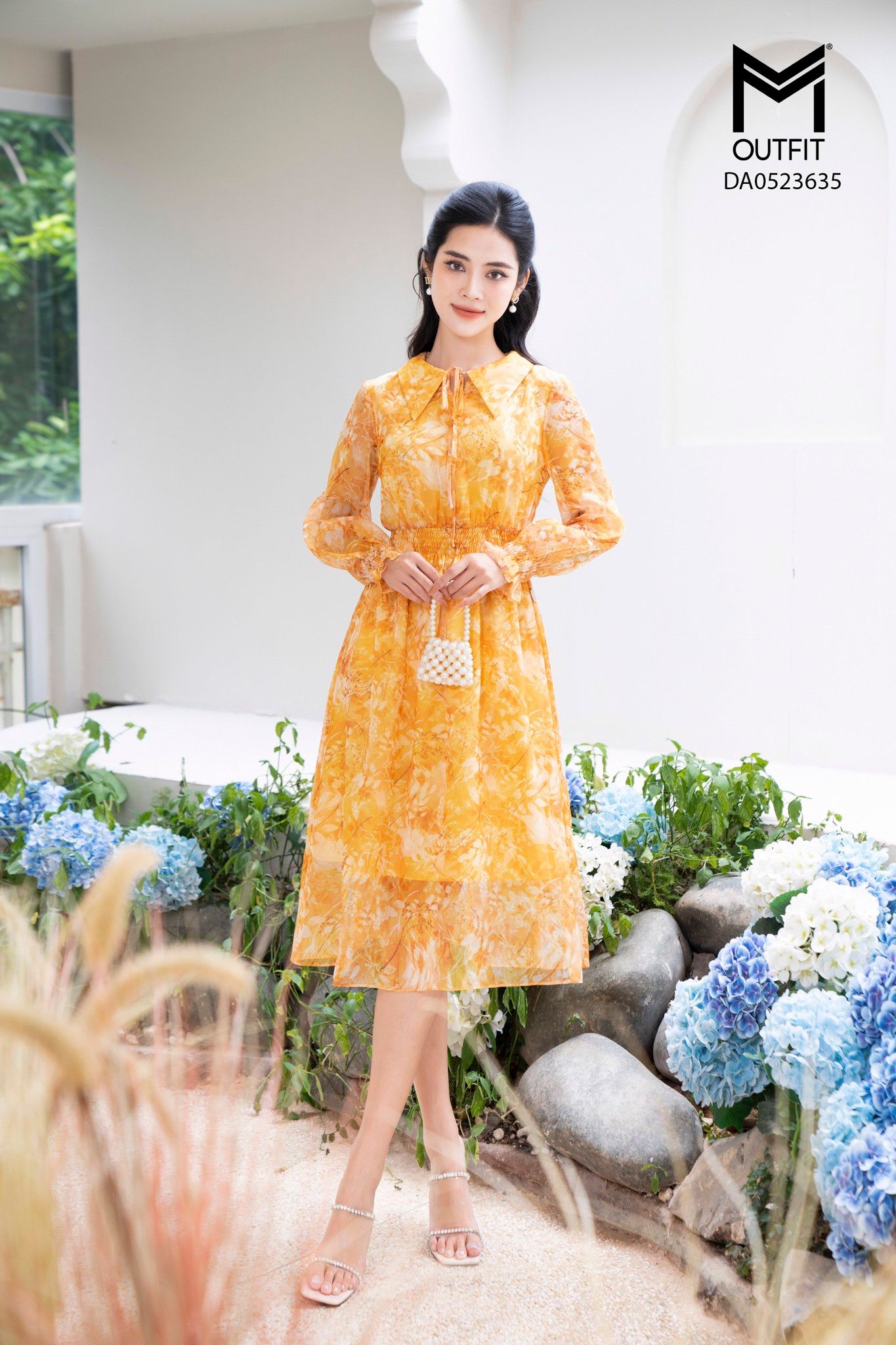 | Đặc điểm | Đầm dáng xòe, tay dài, cổ buộc nơ |