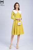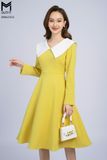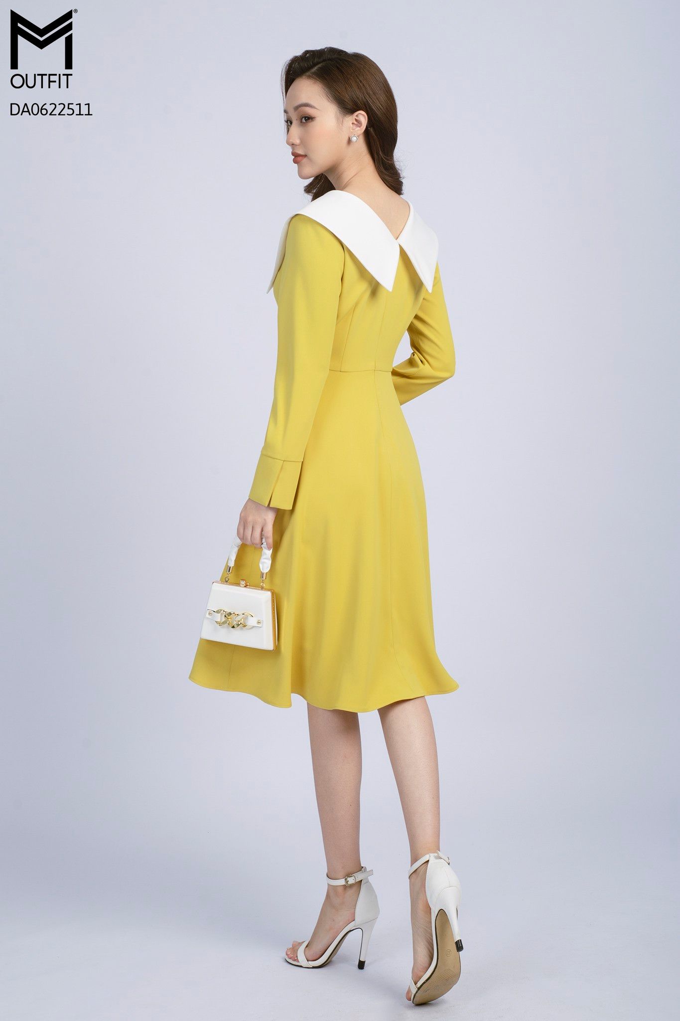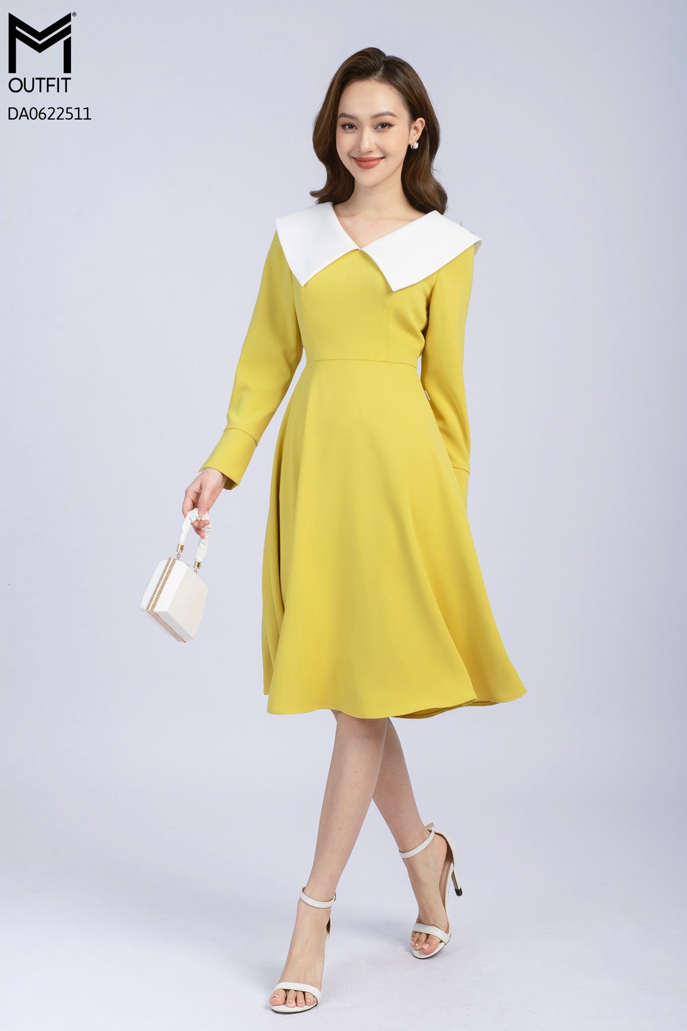 Đầm dáng xòe, tay dài, cổ phối trắng