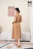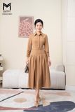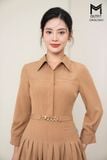 Đầm thiết kế dài tay dáng xòe, ly xếp tự nhiên kèm đai xích TT