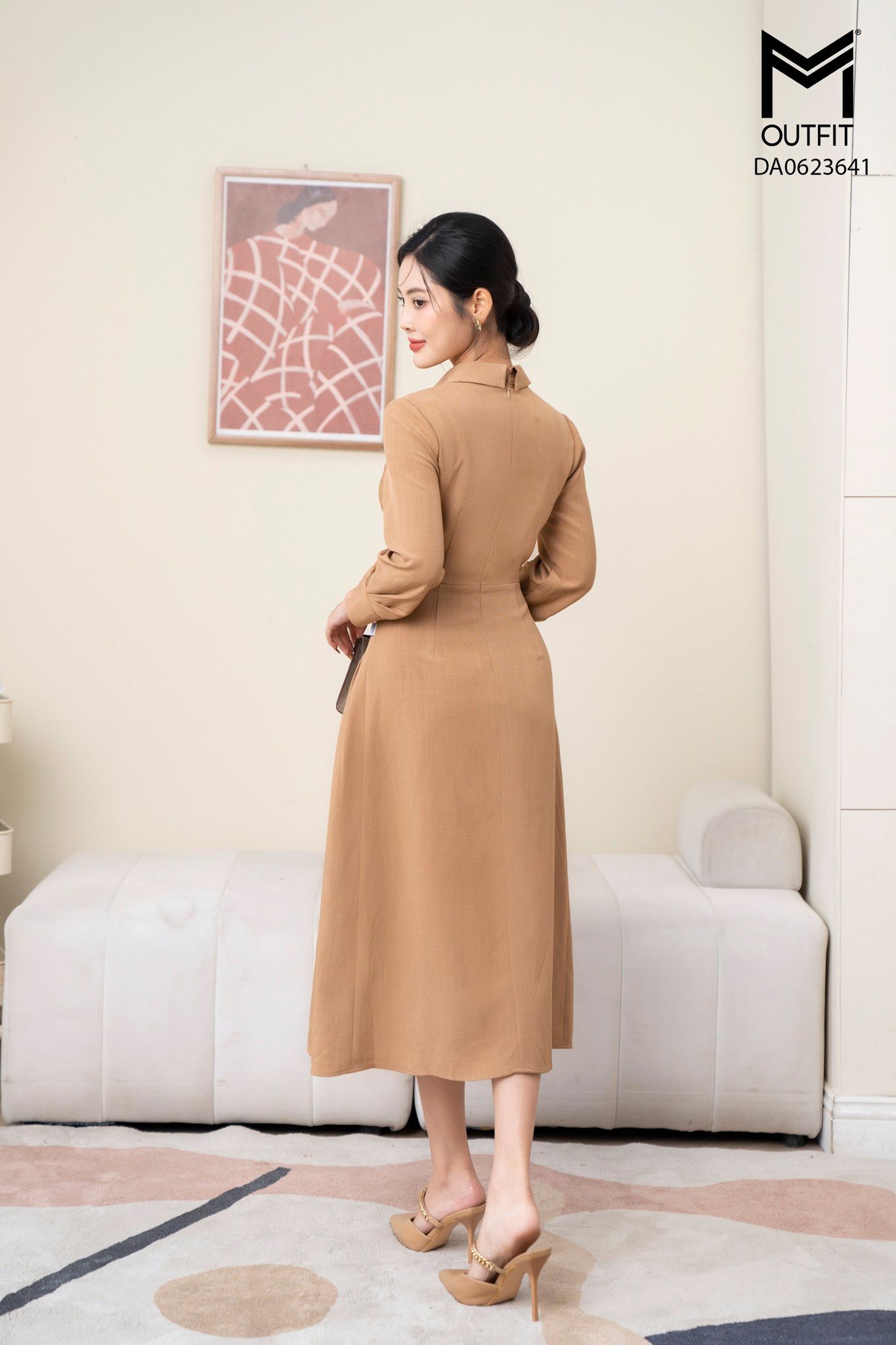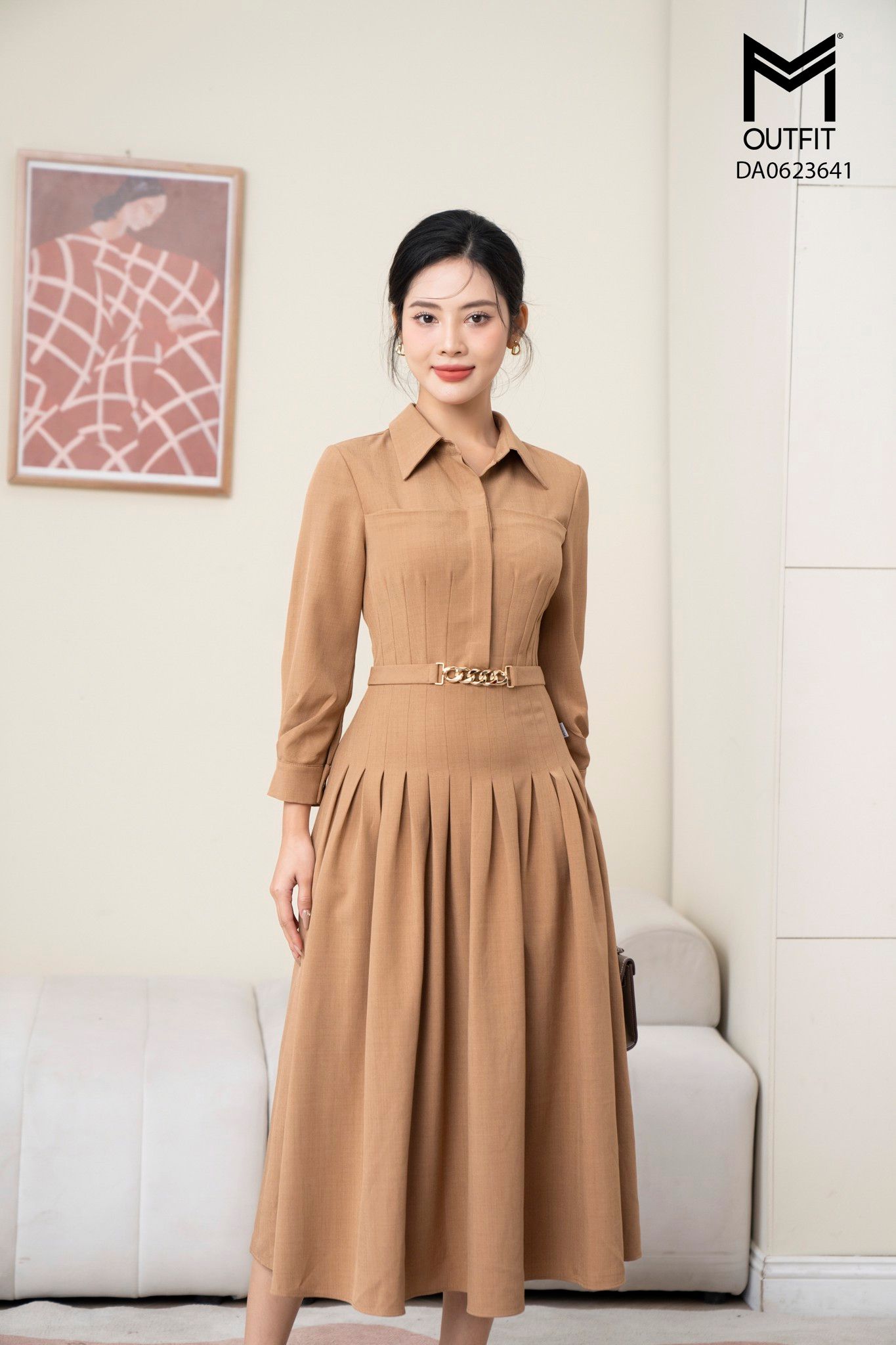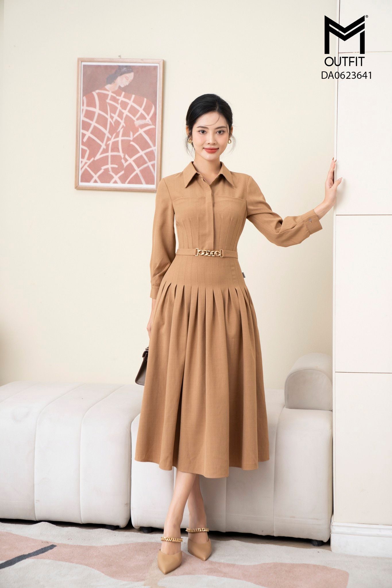 | Đặc điểm | Đầm thiết kế dài tay dáng xòe, ly xếp tự nhiên kèm đai xích TT |