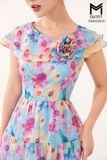 Đầm dáng xòe, tùng nhún, đính hoa TT