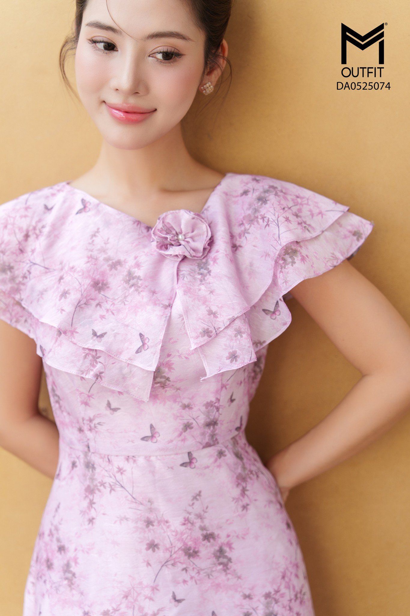 | Đặc điểm | Đầm hoa xòe tà bong cổ đính hoa |