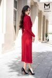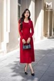 Đầm len dáng A, tà bong đính cúc TT