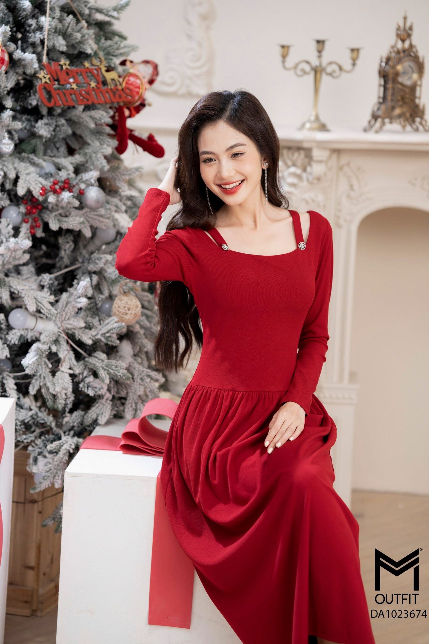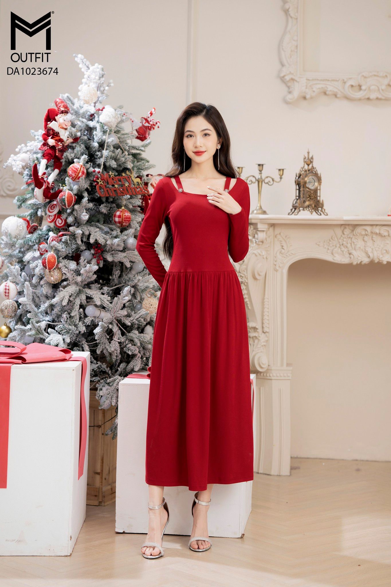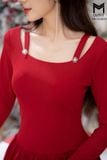 | Đặc điểm | Đầm len dáng xòe, cổ U đính cúc TT |