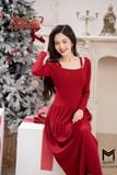 Đầm len dáng xòe, cổ U đính cúc TT
