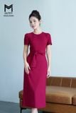 Đầm ôm cổ tròn có dây nơ trang trí eo