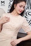 Đầm ôm pha ren tay nhún bồng cổ đính dây đá