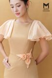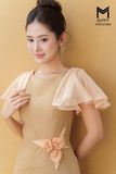 Đầm ôm tay phối tơ xếp ly đính hoa eo