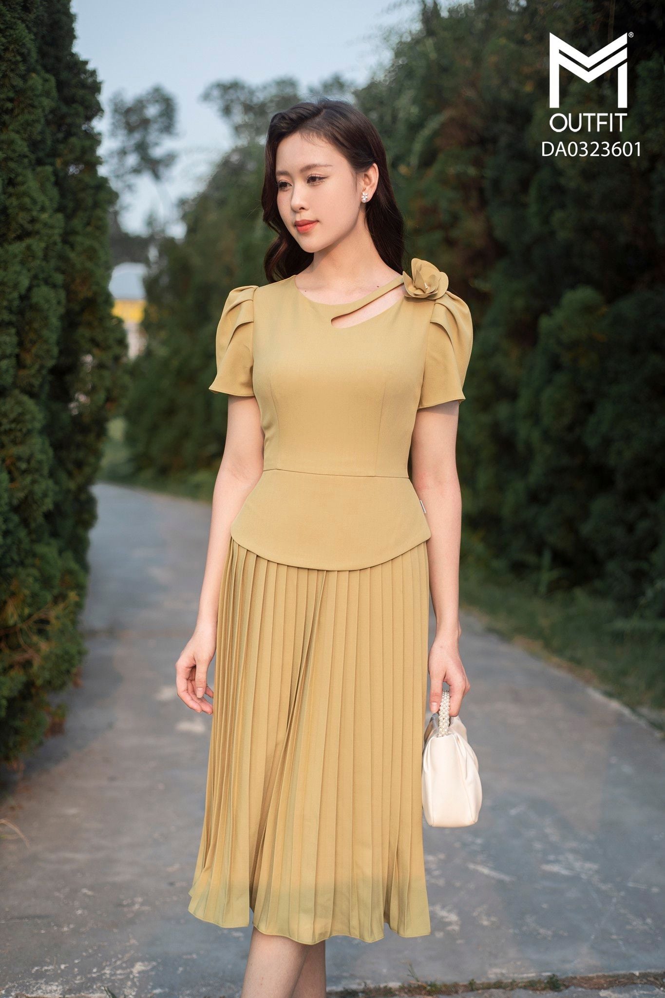 | Đặc điểm | Đầm peplum hở giọt nước, tùng dập ly |