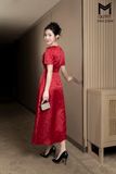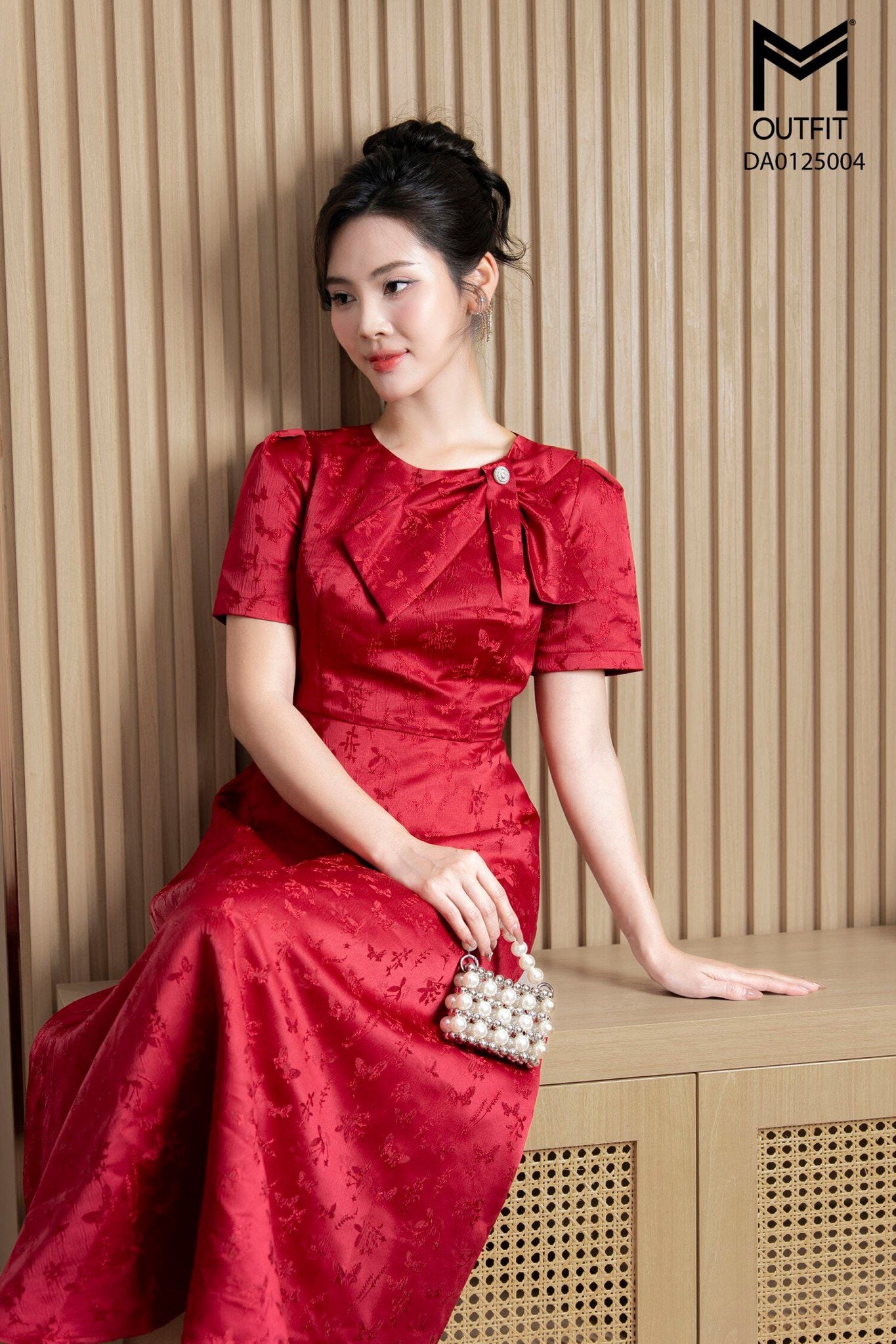Đầm tiệc xòe cổ nơ đính đá, dài 130cm