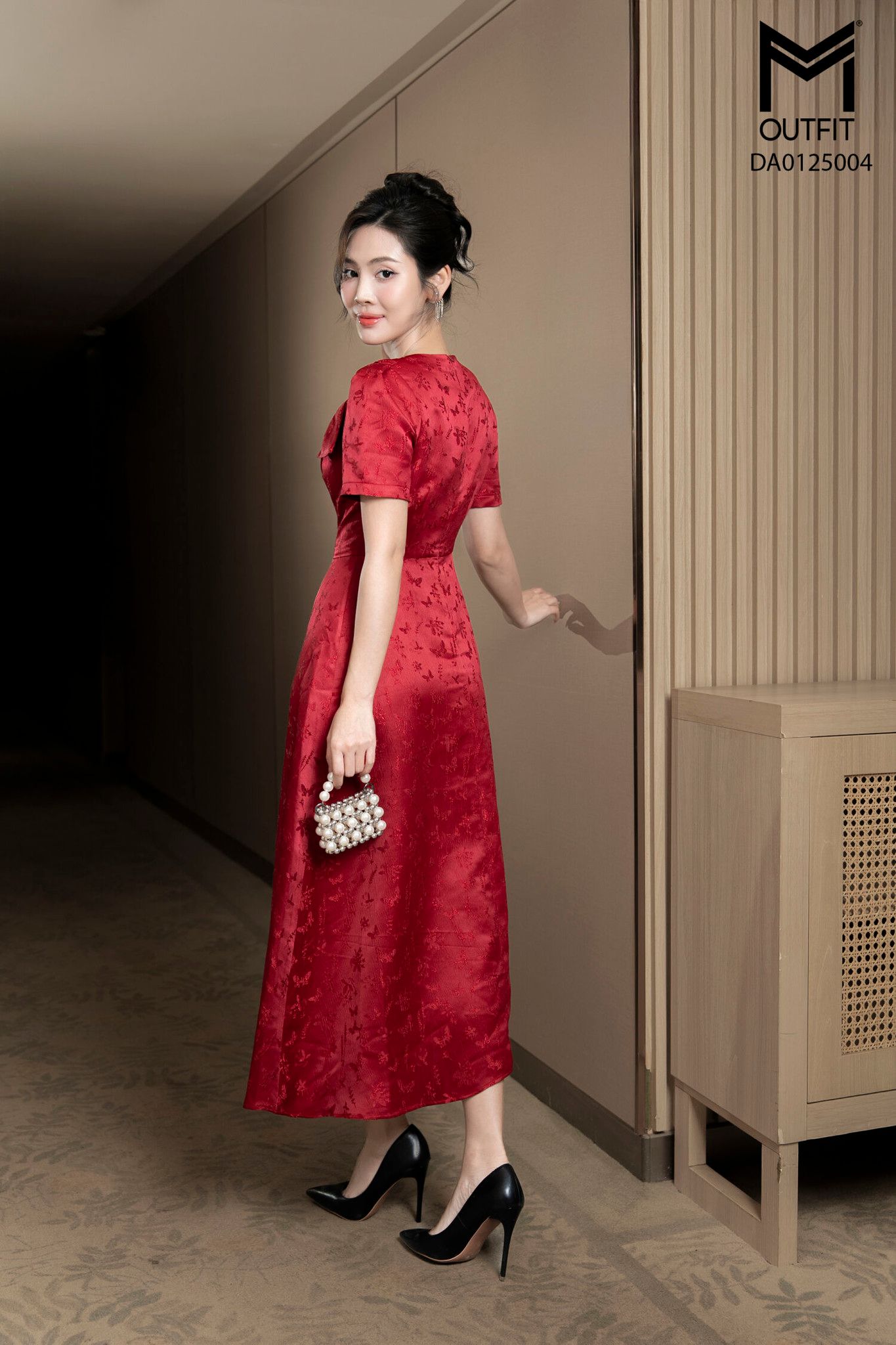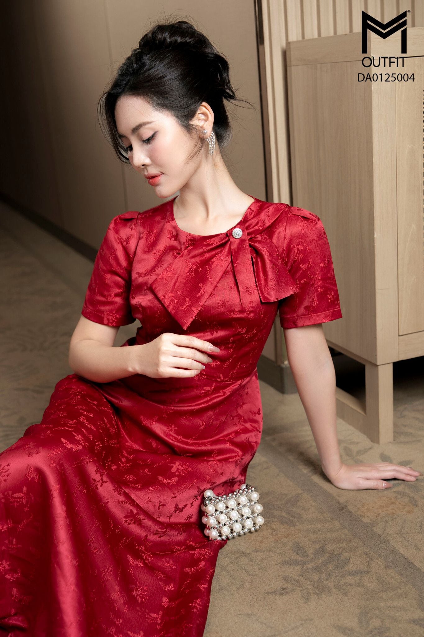 | Đặc điểm | Đầm tiệc xòe cổ nơ đính đá, dài 130cm |