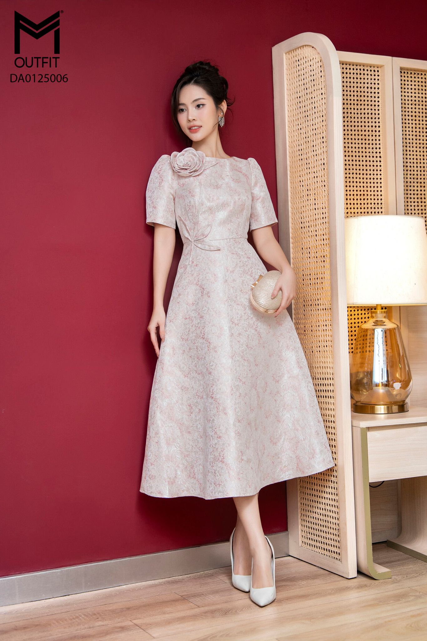 | Đặc điểm | Đầm tiệc xòe thân đính hoa lá |