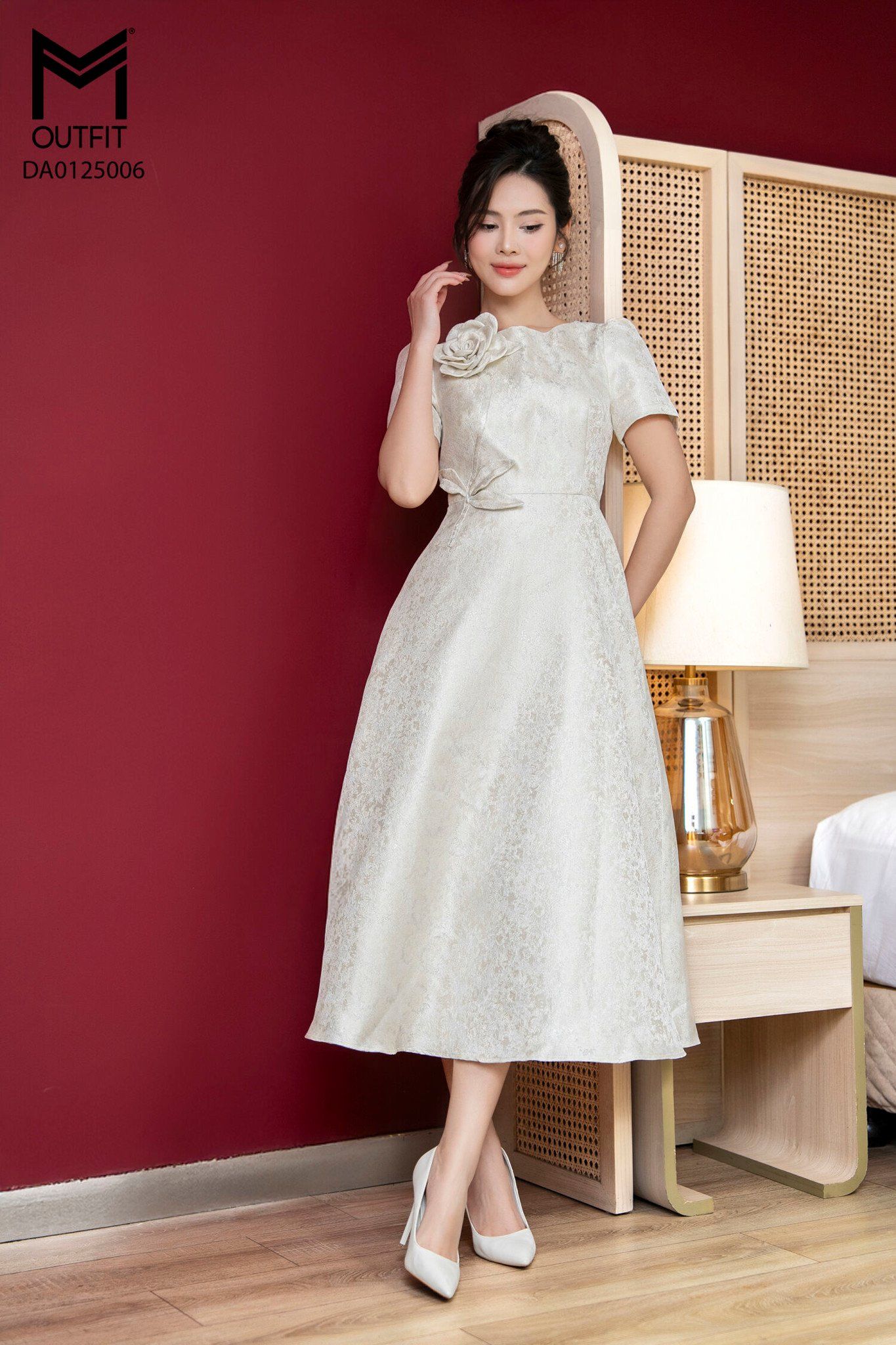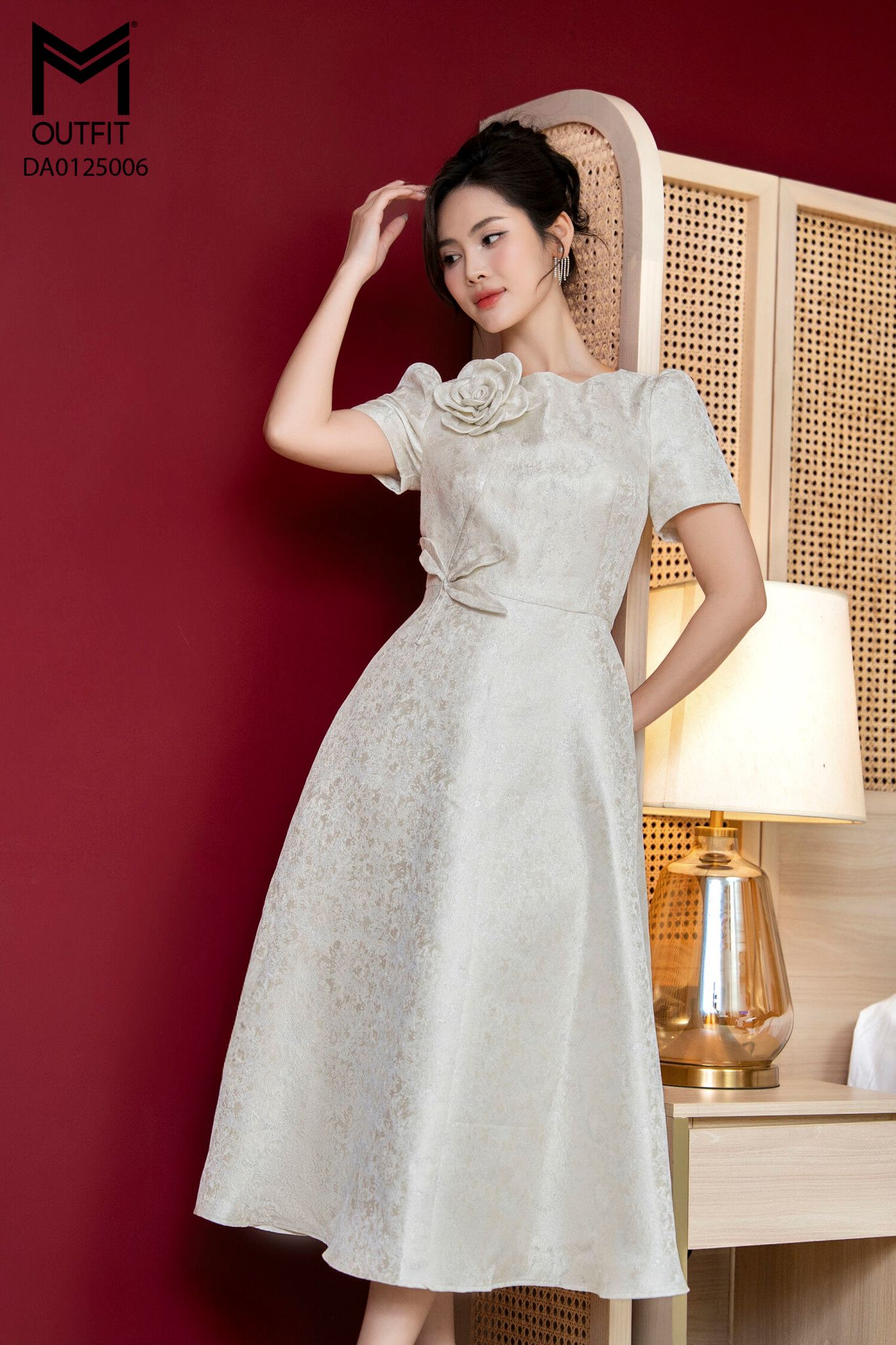 | Đặc điểm | Đầm tiệc xòe thân đính hoa lá |