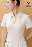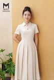 Đầm xếp ly cổ nơ ập đính cúc trang trí