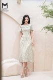 | Đặc điểm | Đầm xòe cầu ngực bấu mí xếp bèo nhún,nẹp khuy |