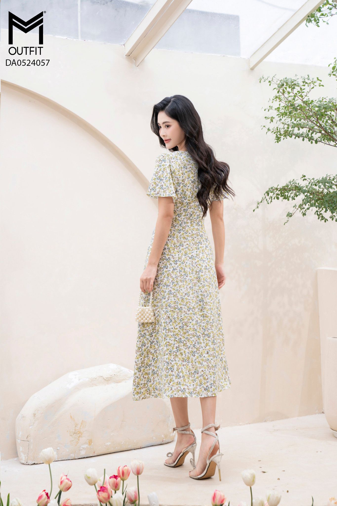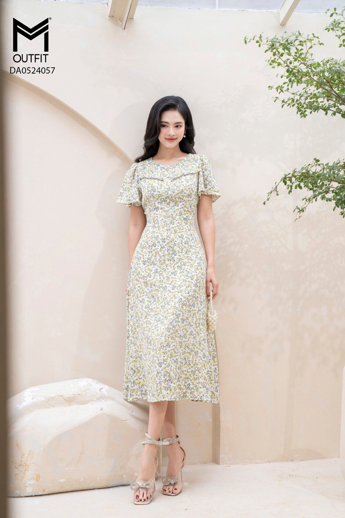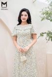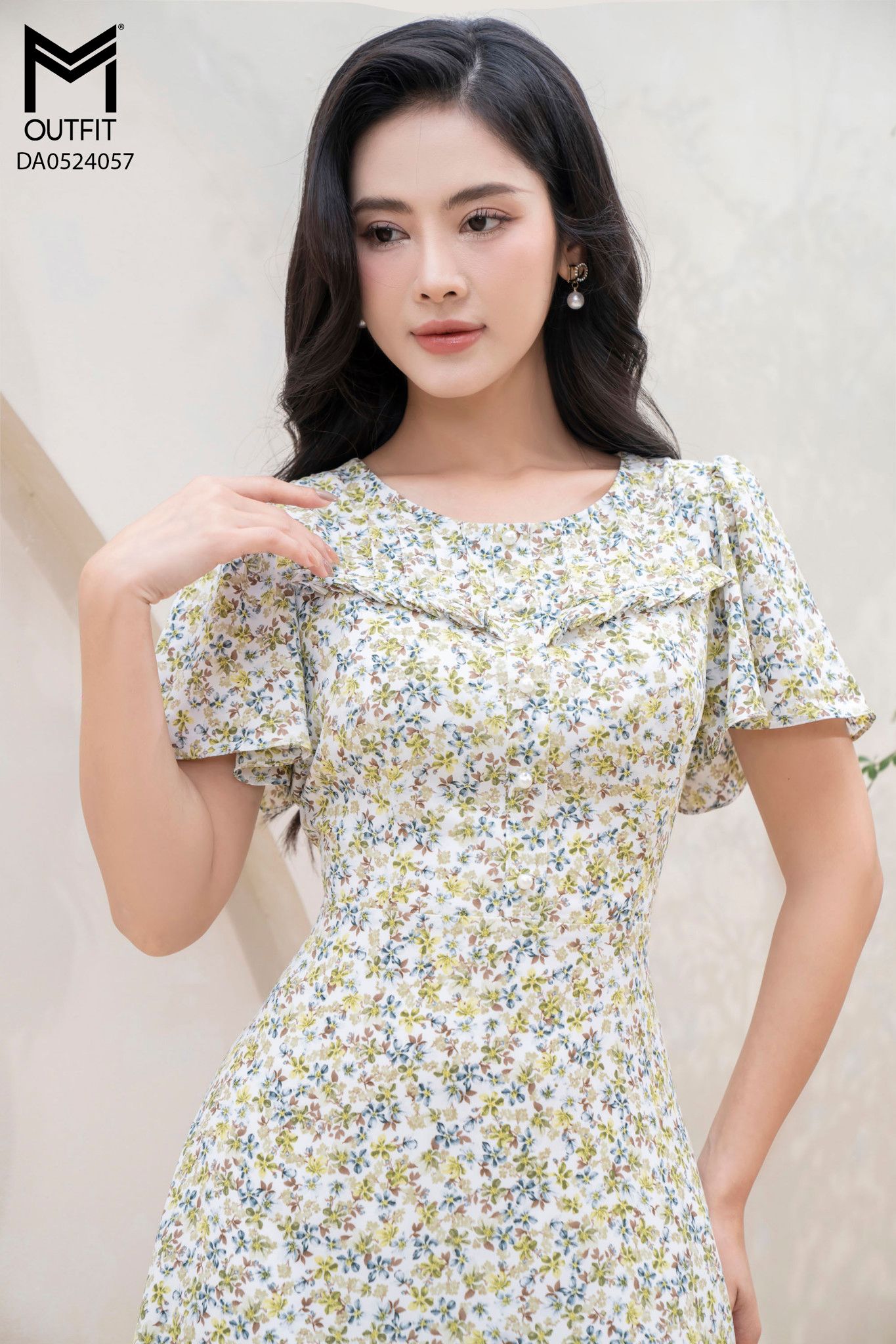Đầm xòe cầu ngực bấu mí xếp bèo nhún,nẹp khuy