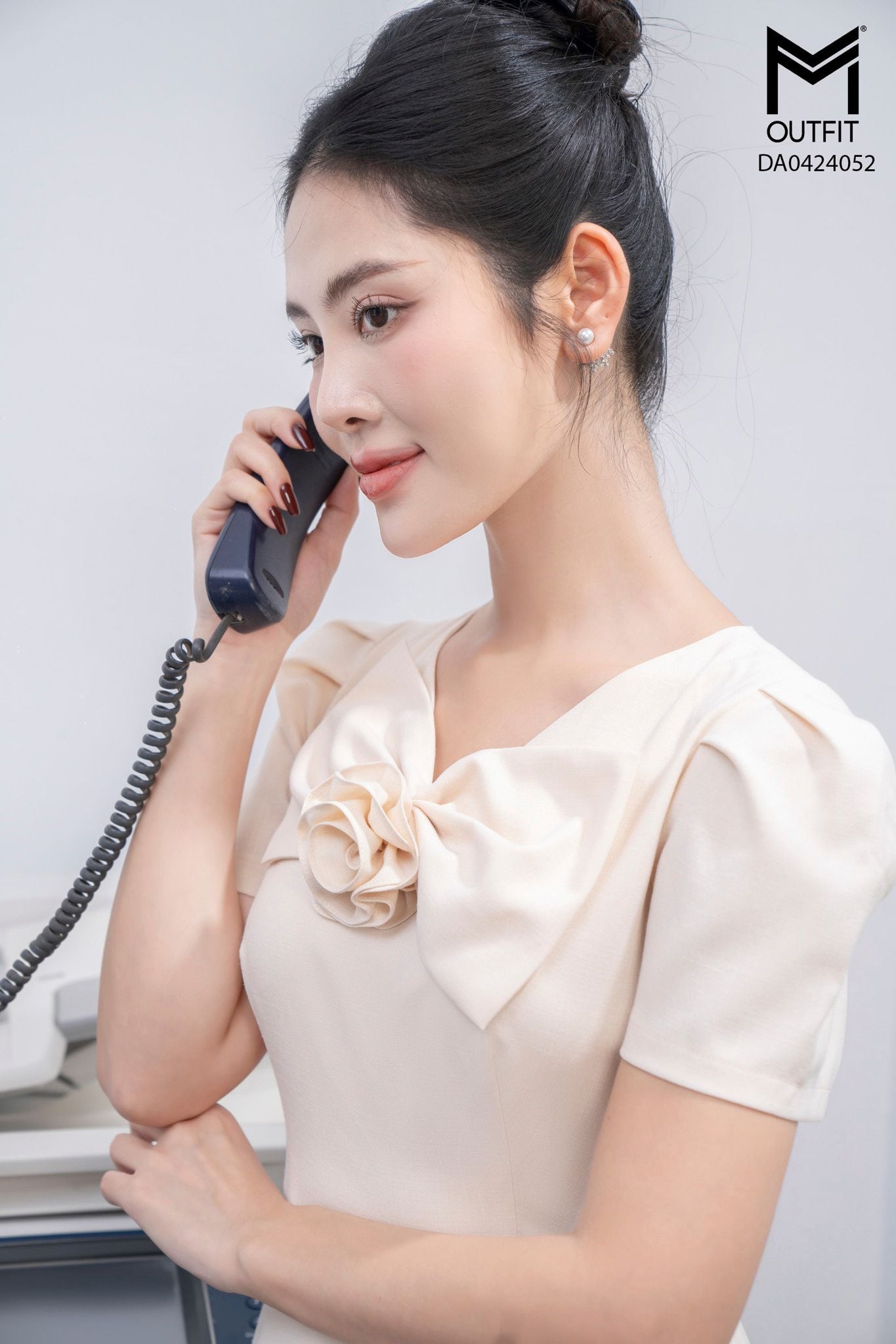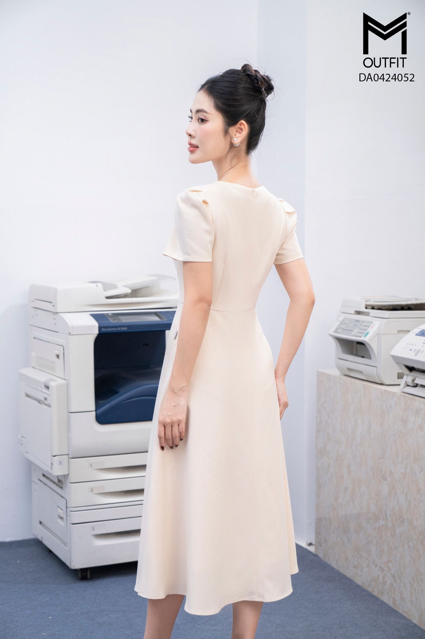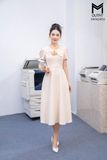 | Đặc điểm | Đầm xòe cổ đính nơ tay bồng nhẹ |