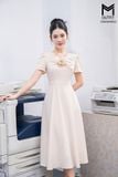 Đầm xòe cổ đính nơ tay bồng nhẹ
