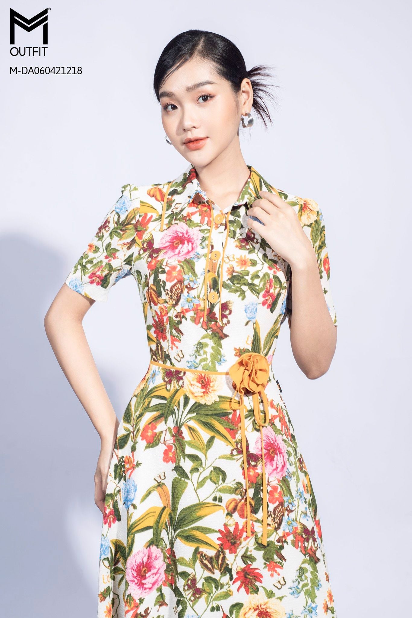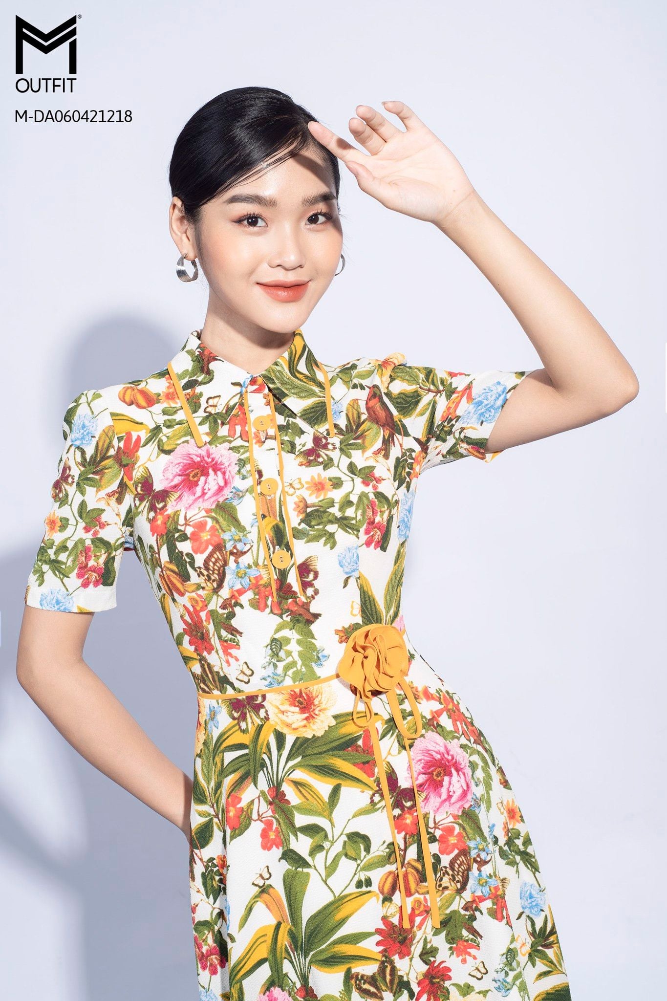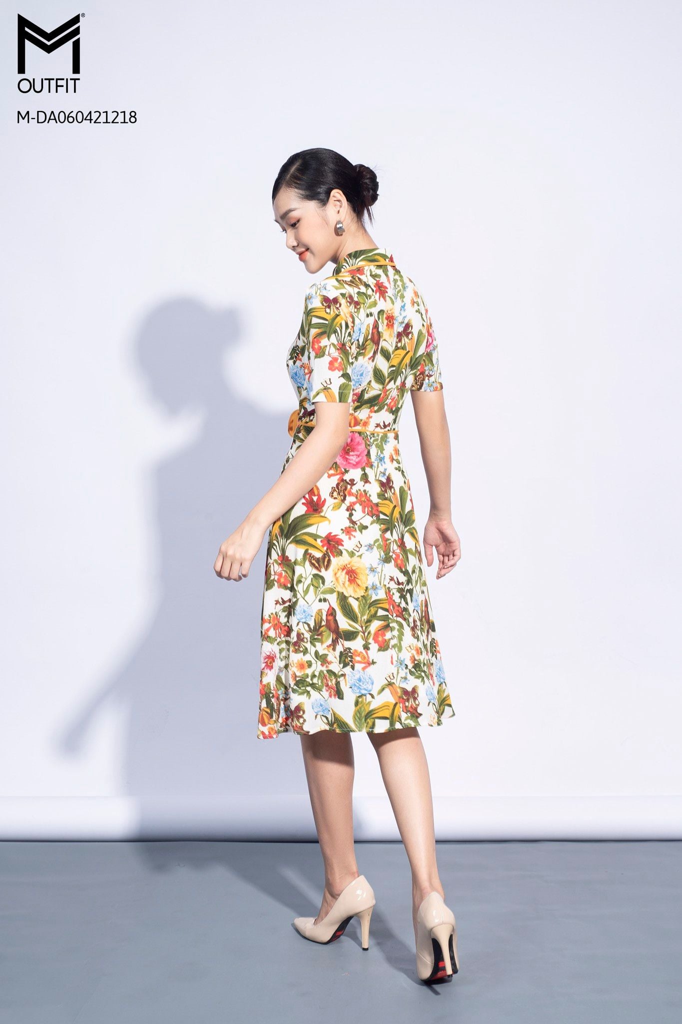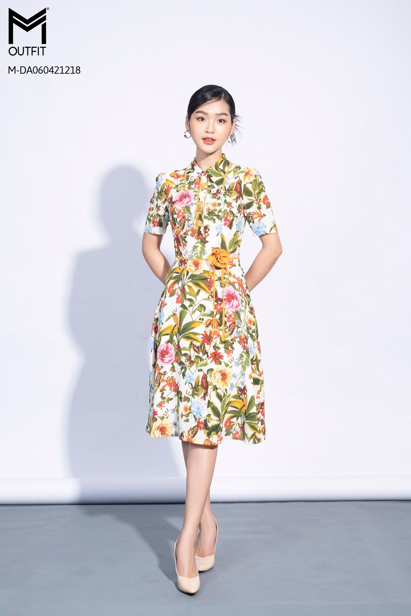 | Đặc điểm | Đầm xòe, cổ đức, đính hoa ở eo, tay cộc |