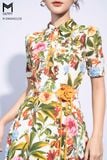 Đầm xòe, cổ đức, đính hoa ở eo, tay cộc
