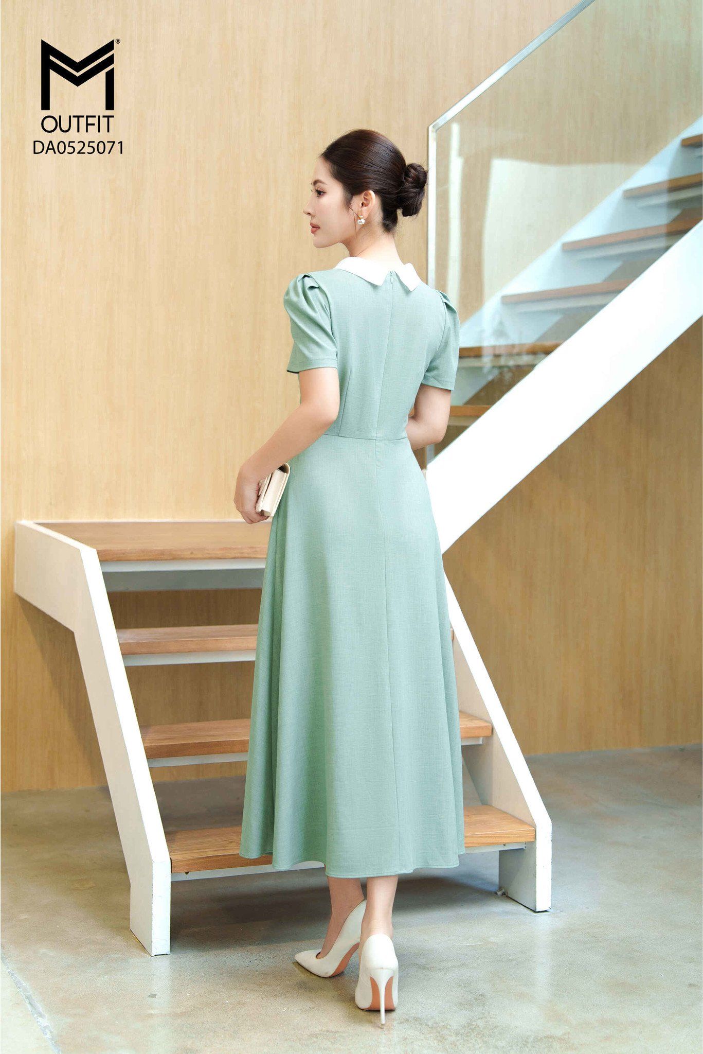 | Đặc điểm | Đầm xòe cổ phối tơ thân đính hạt trai |