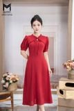 Đầm xòe cổ tàu nằm kẹp ren cổ đính cúc đá