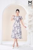 | Đặc điểm | Đầm xòe cổ thuyền đính hoa ngực,tay nhún bồng vai |