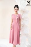 Đầm xòe cổ tròn đính bèo nơ