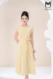 Đầm xòe cổ tròn đính cúc bọc đai cài rời