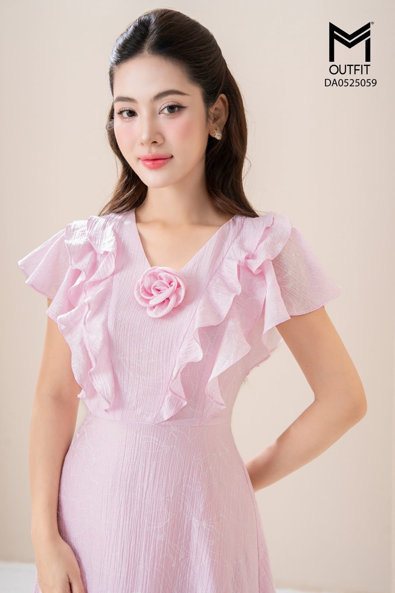 | Đặc điểm | Đầm xòe cổ V bèo ngực đính hoa tay cánh tiên |