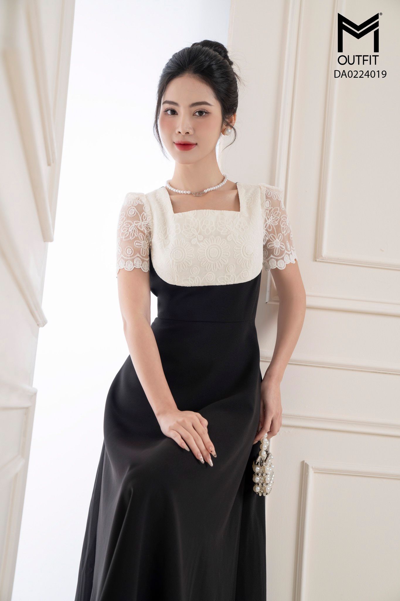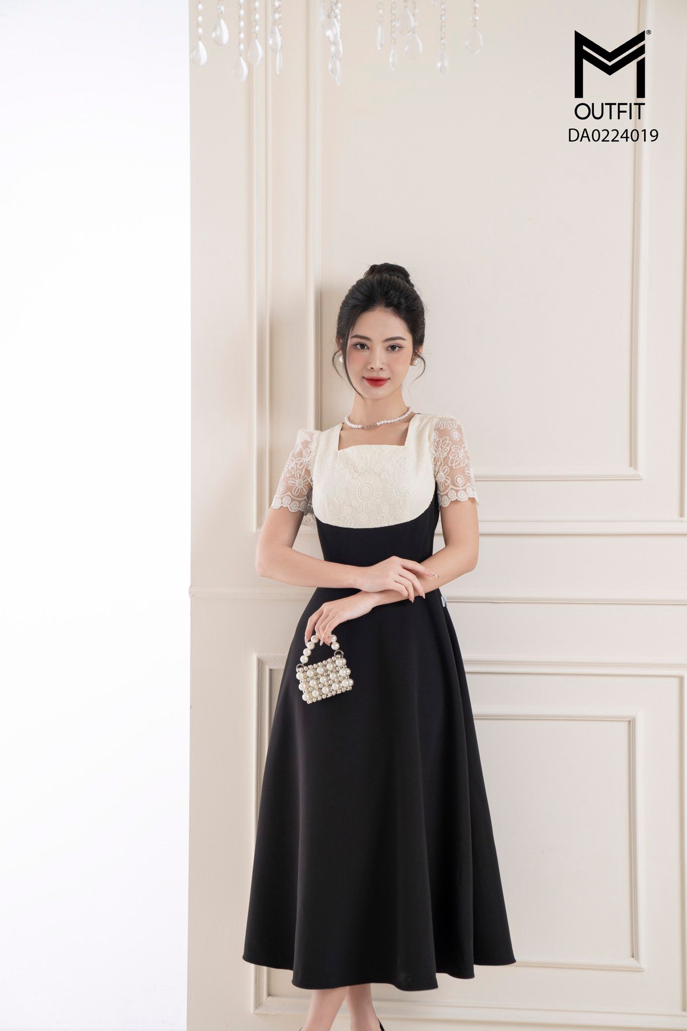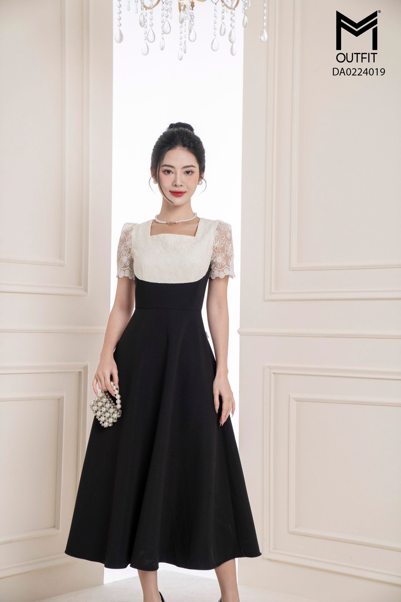 | Đặc điểm | Đầm xòe cổ vuông phối ren |