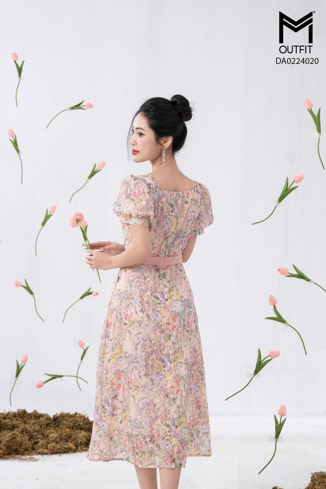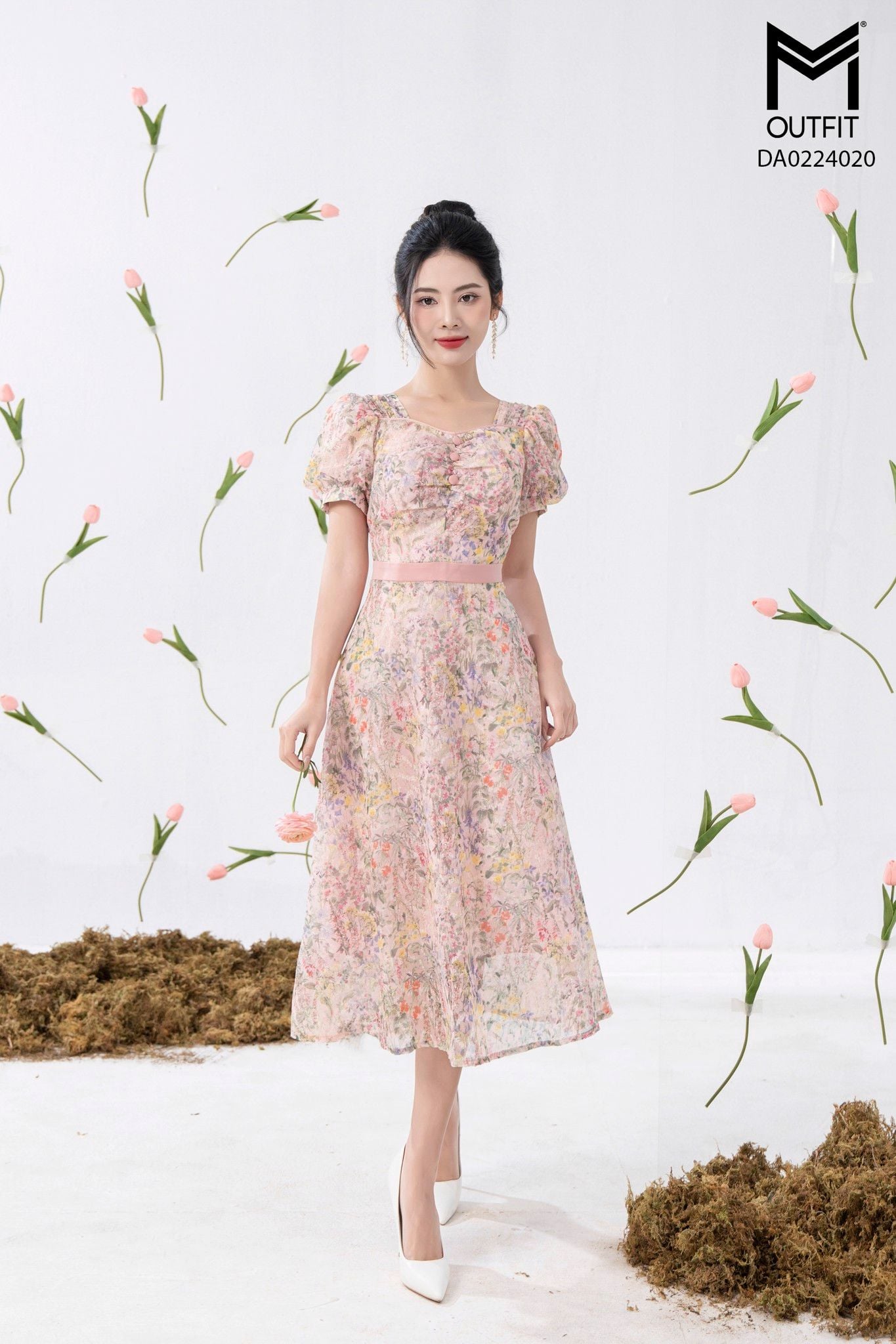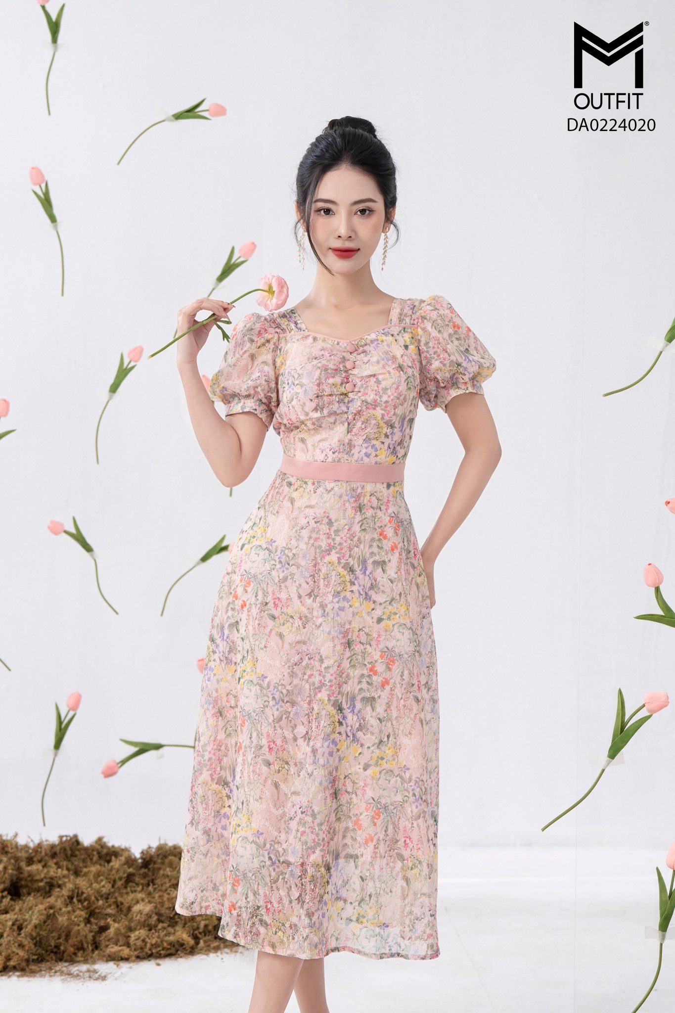 | Đặc điểm | Đầm xòe hoa cổ vuông+ nhúm ngực có cúc |