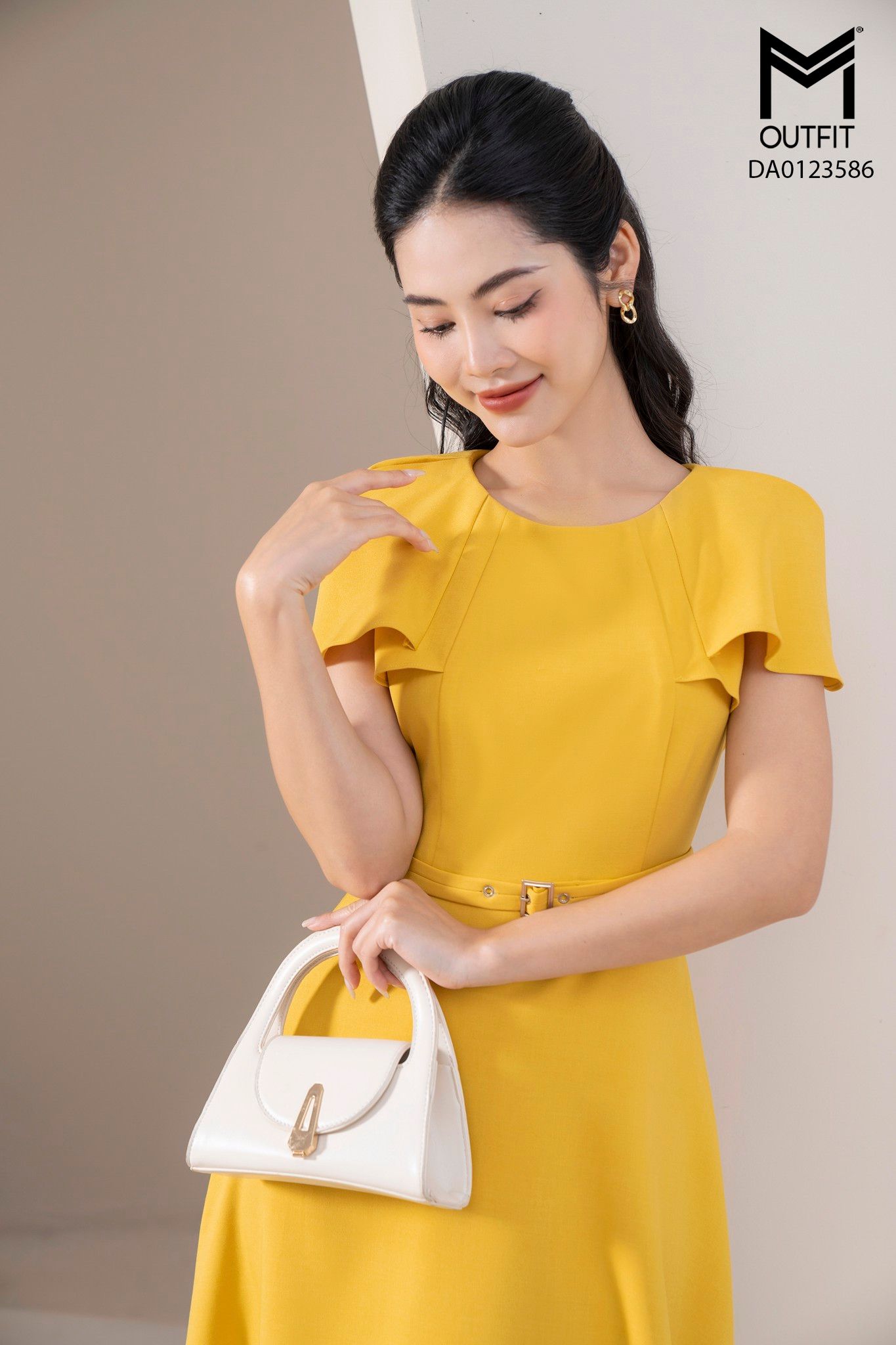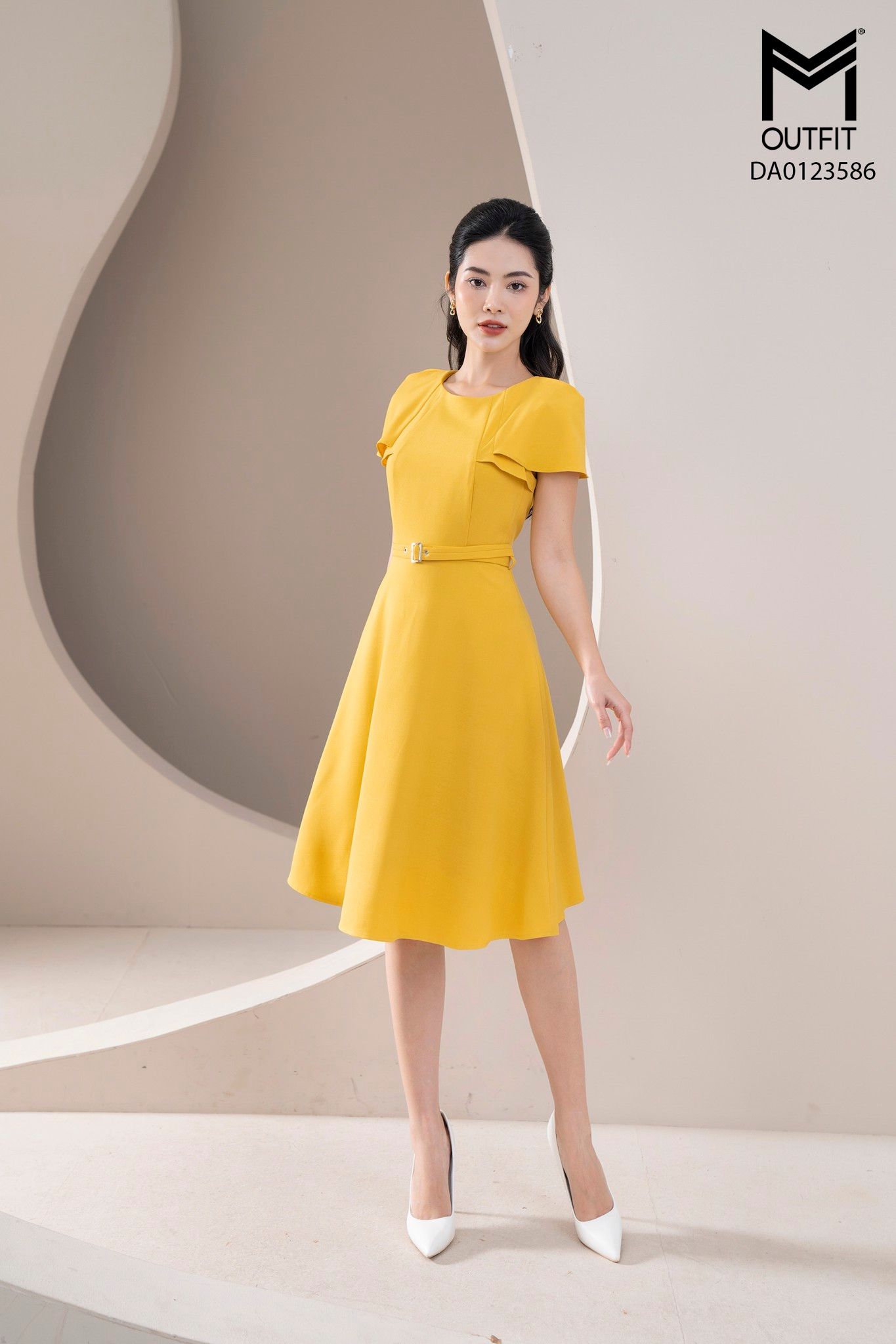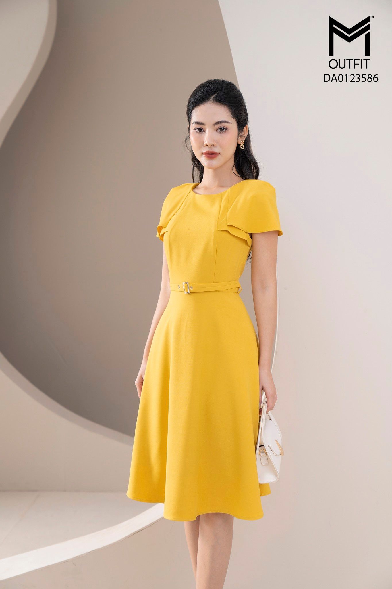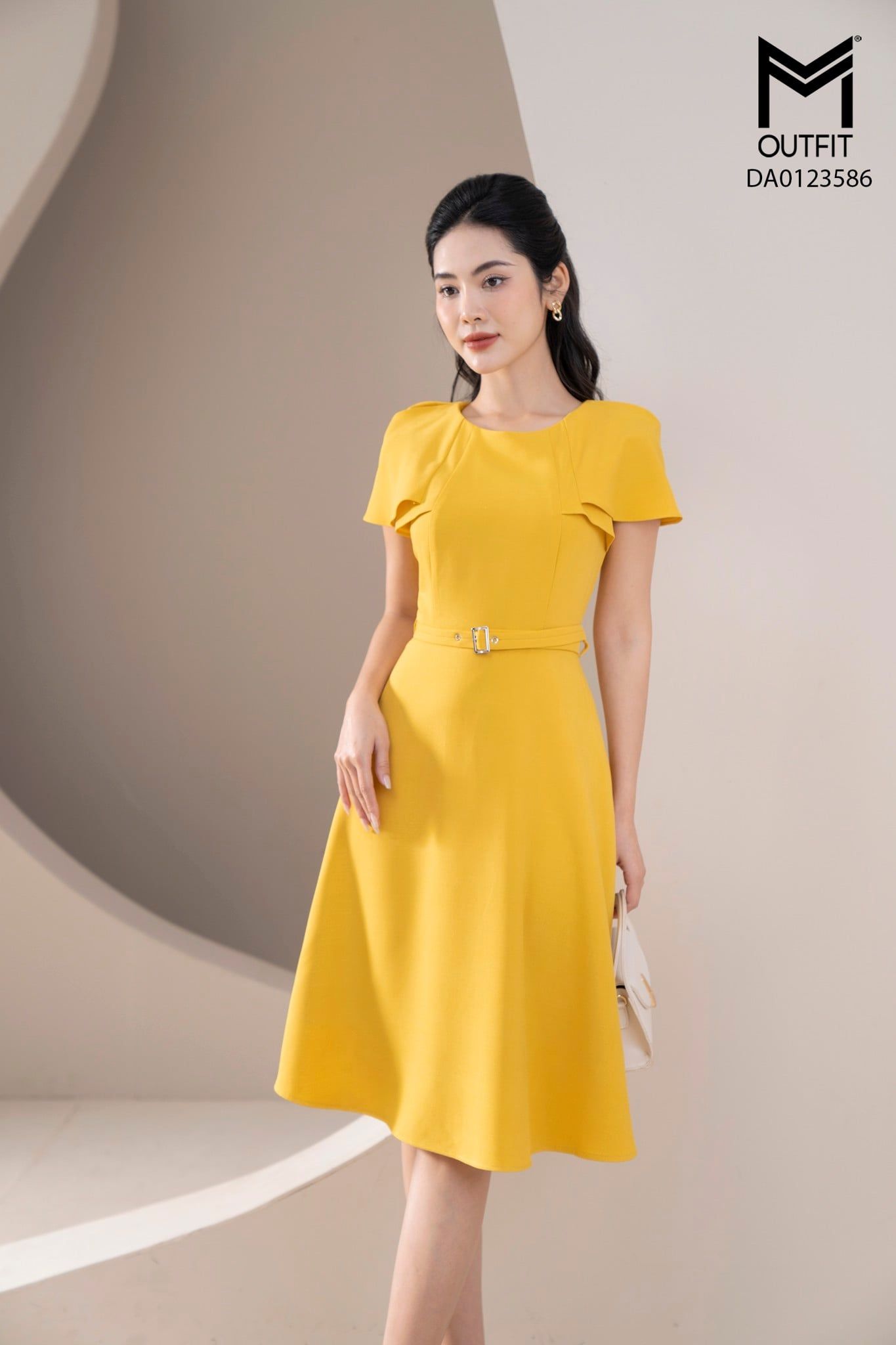 | Đặc điểm | Đầm xòe liền vai cách điệu, có đai tạo điểm nhấn |