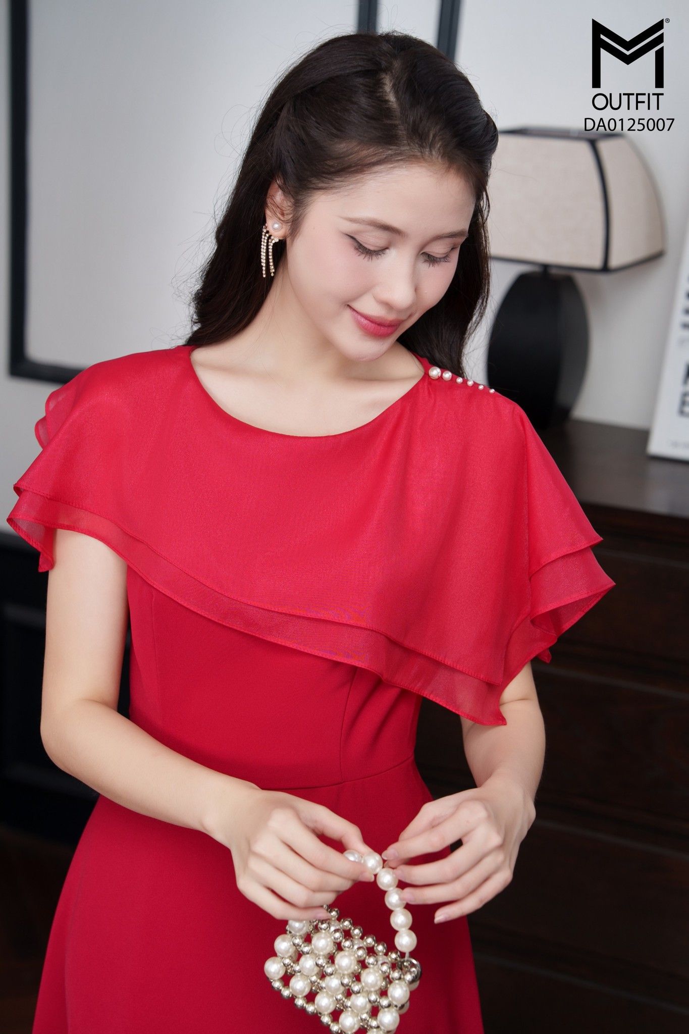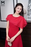 | Đặc điểm | Đầm xòe tà bong phối tơ đính trai trên vai |