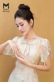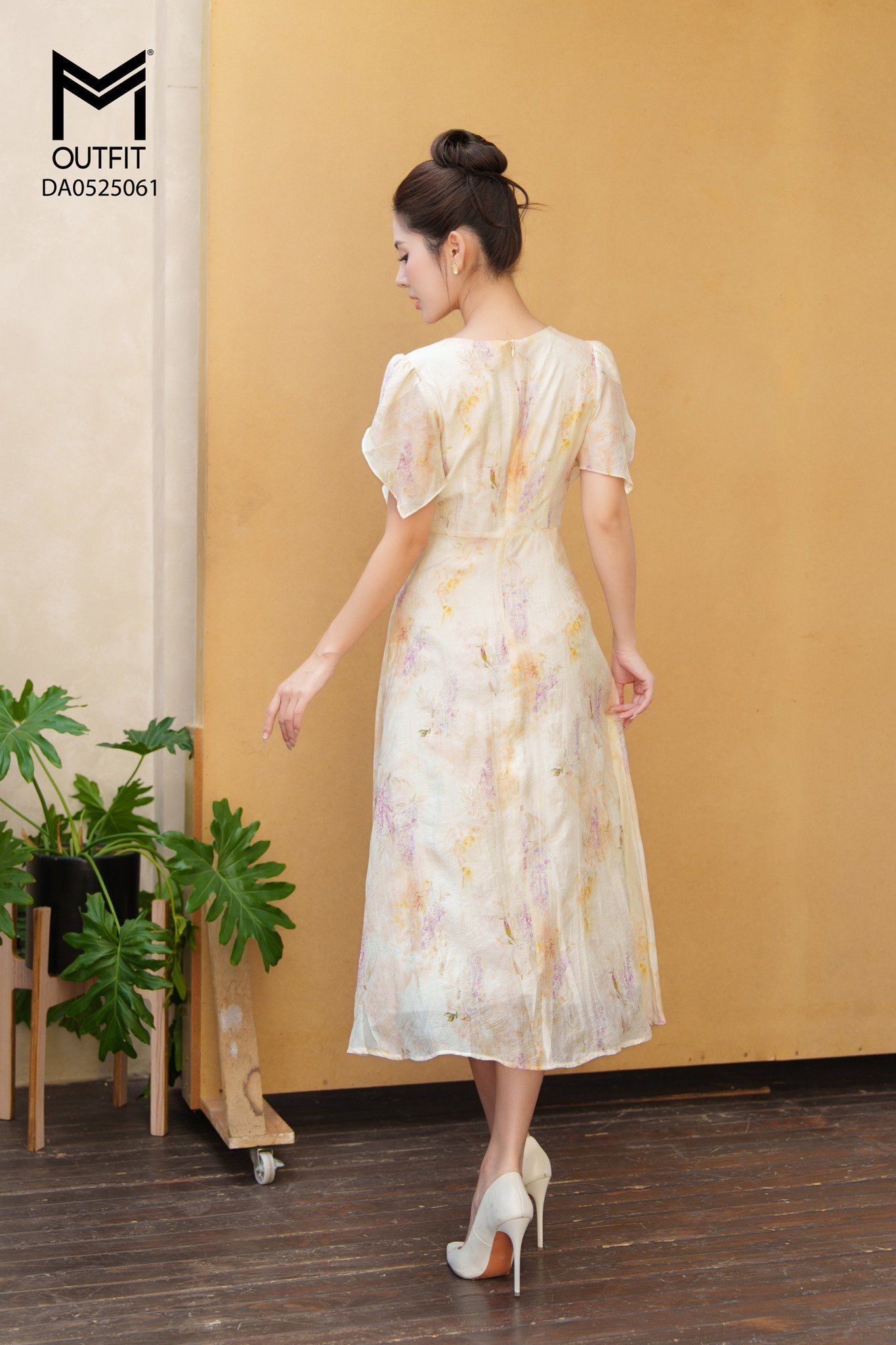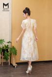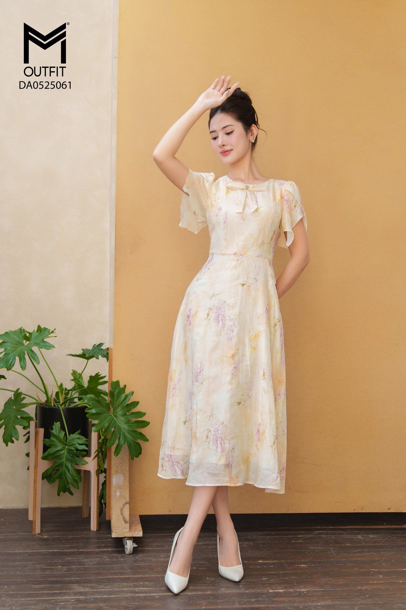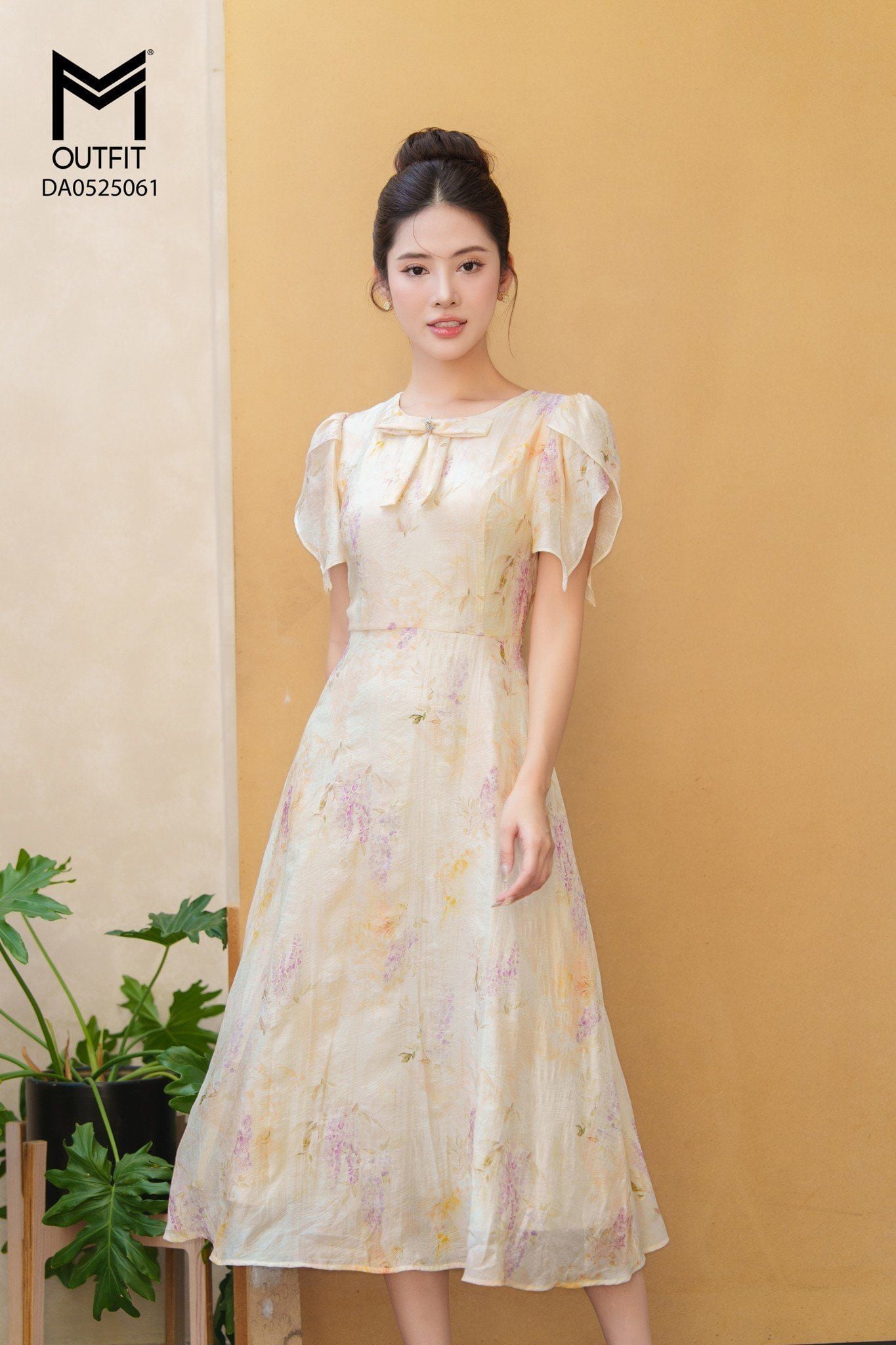 | Đặc điểm | Đầm xòe tay nụ hồng vuông đính nơ cổ |