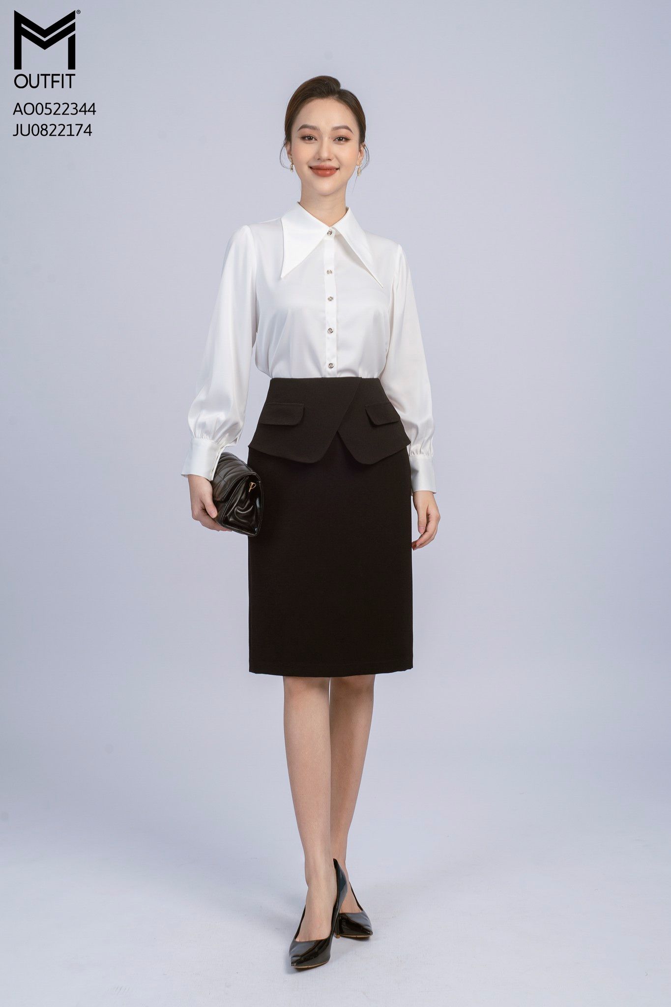 | Đặc điểm | Juyp dáng bút chì thẳng, tà bong, hai nắp túi giả |