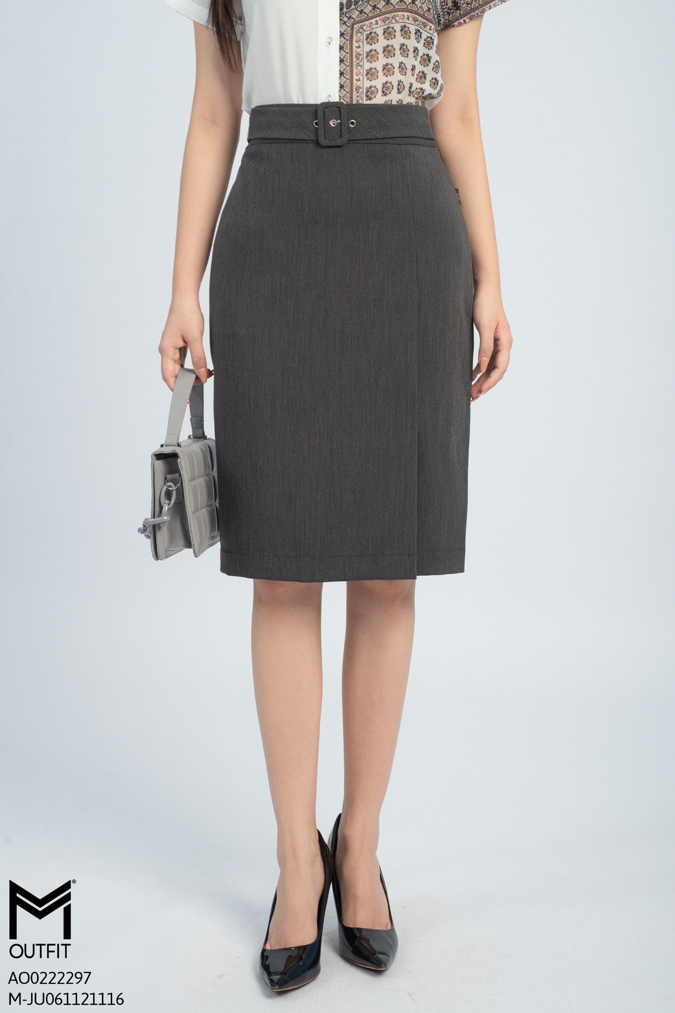 Juyp dáng ôm, xẻ tà, kèm đai bọc TT, màu ghi