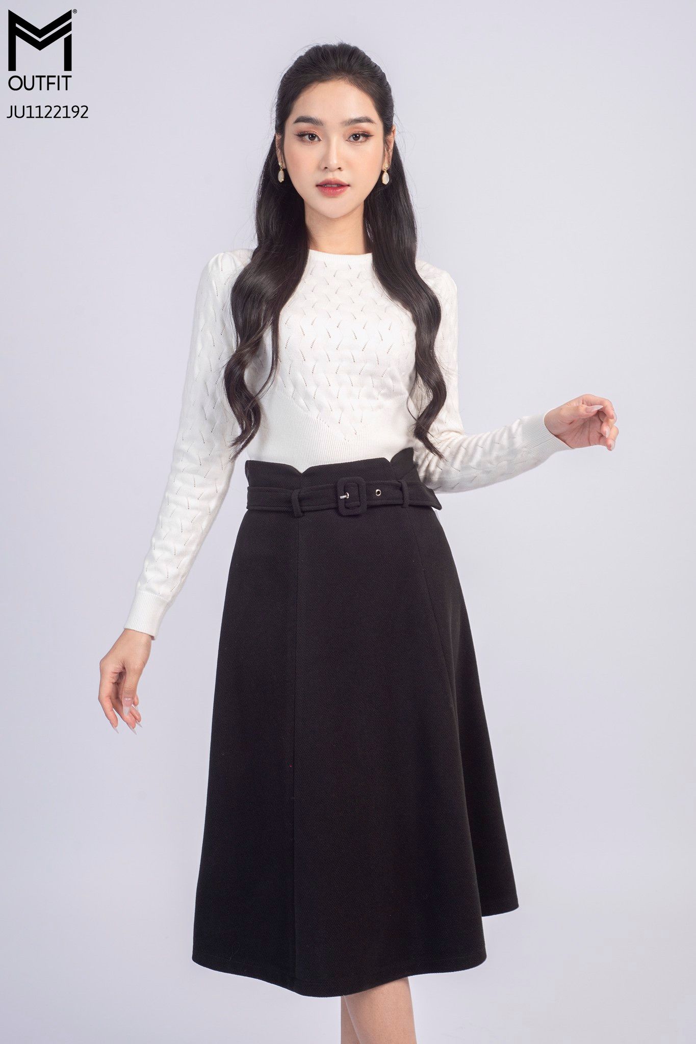 | Đặc điểm | Juyp dáng xòe kèm đai |