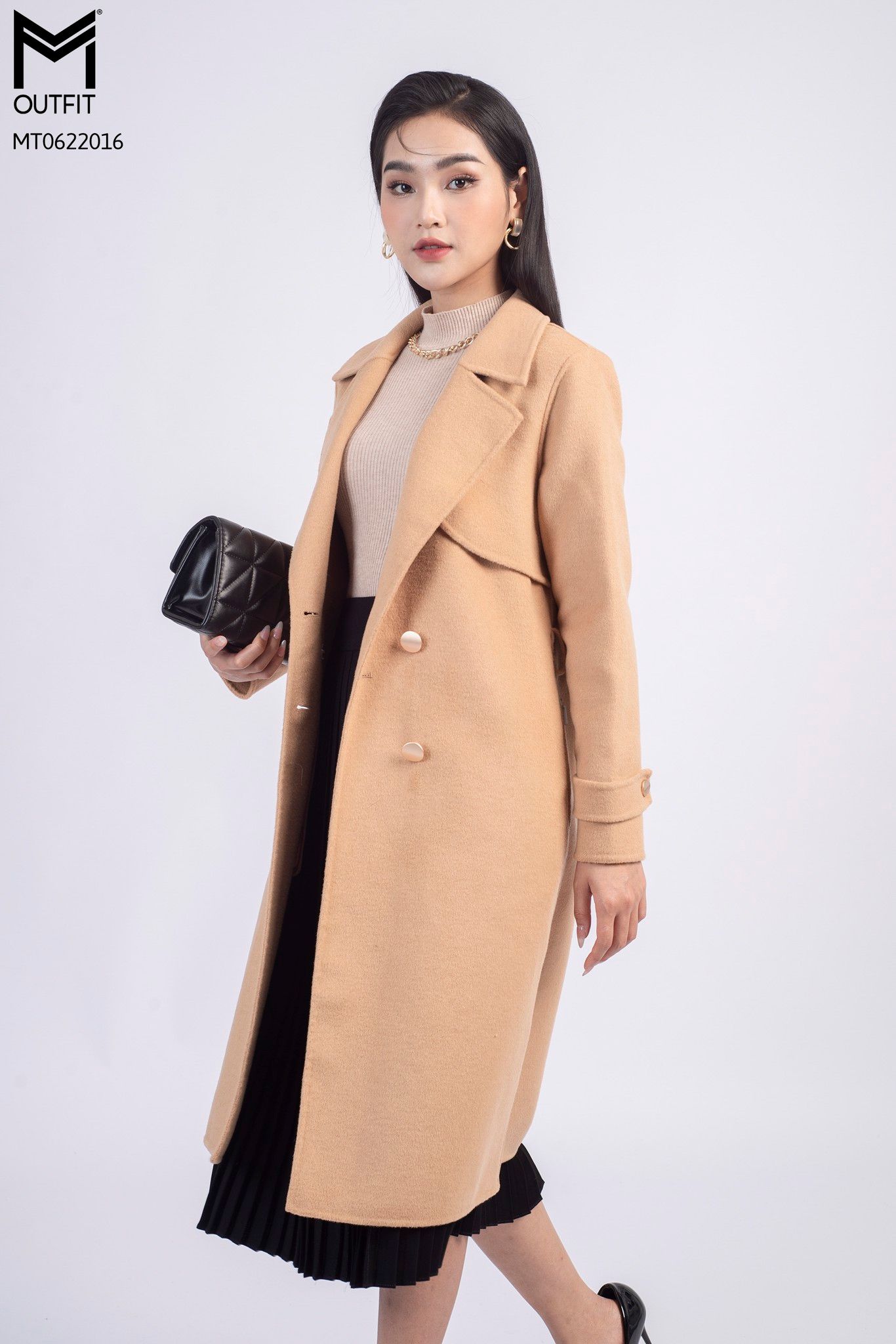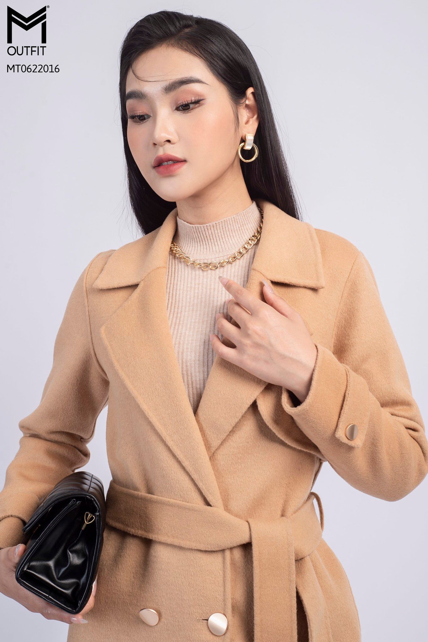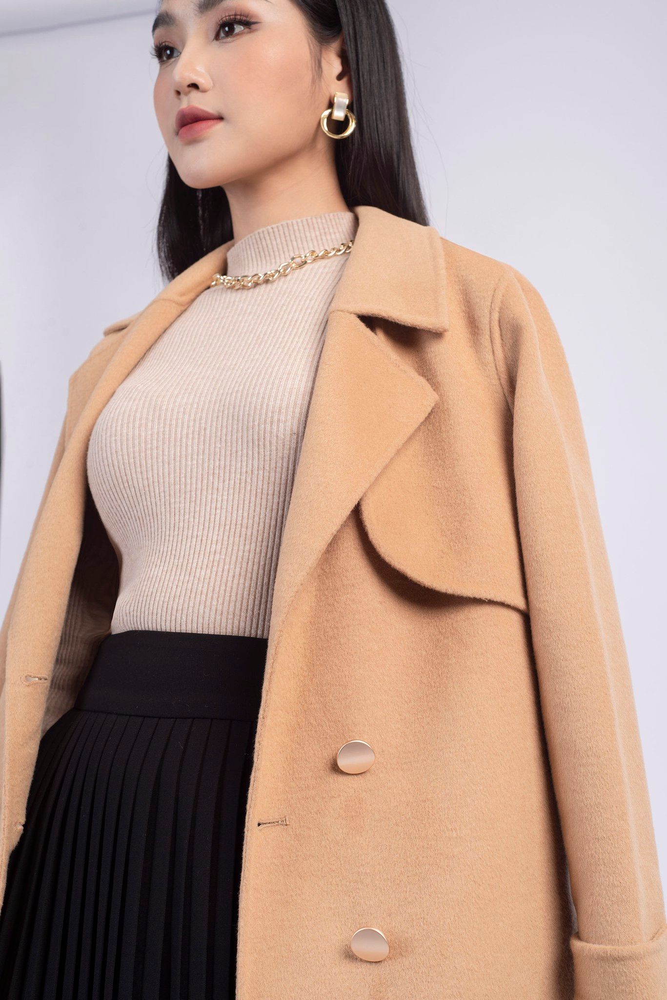 | Đặc điểm | Măng tô dạ lông cừu kèm đai |