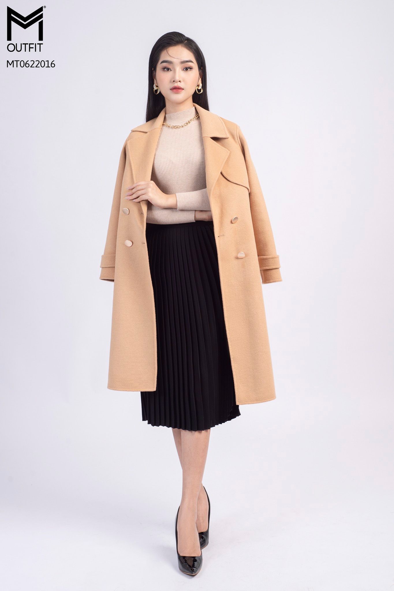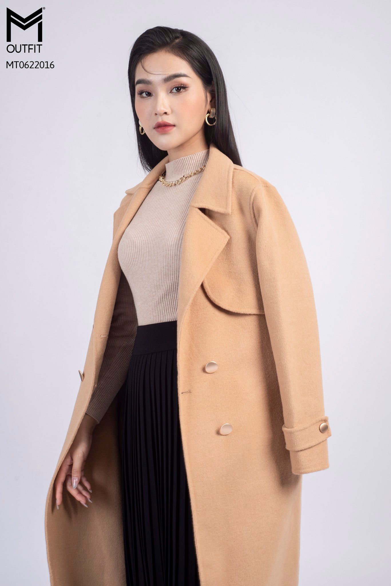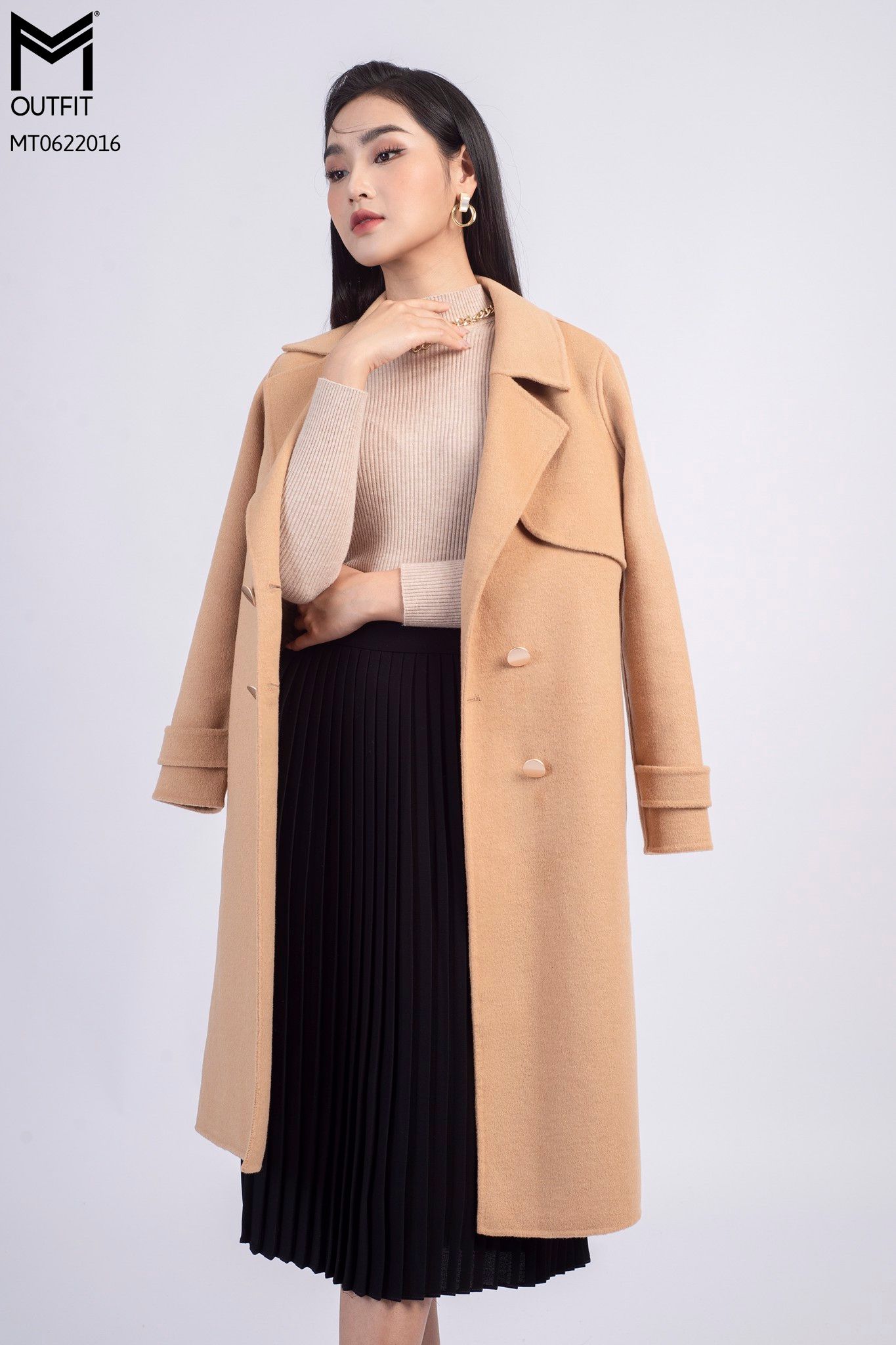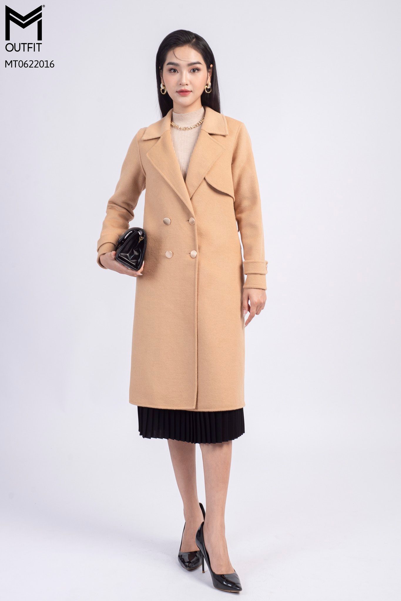 | Đặc điểm | Măng tô dạ lông cừu kèm đai |