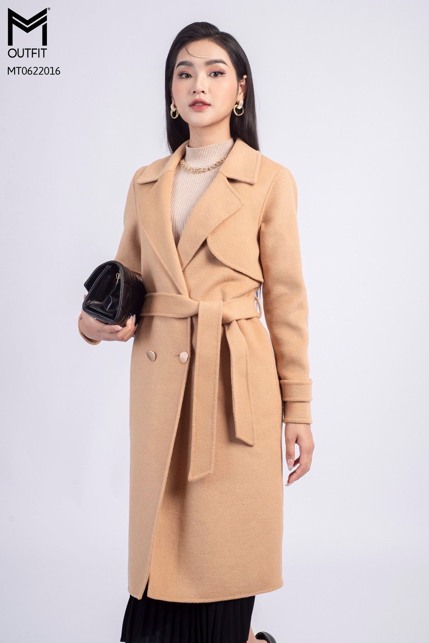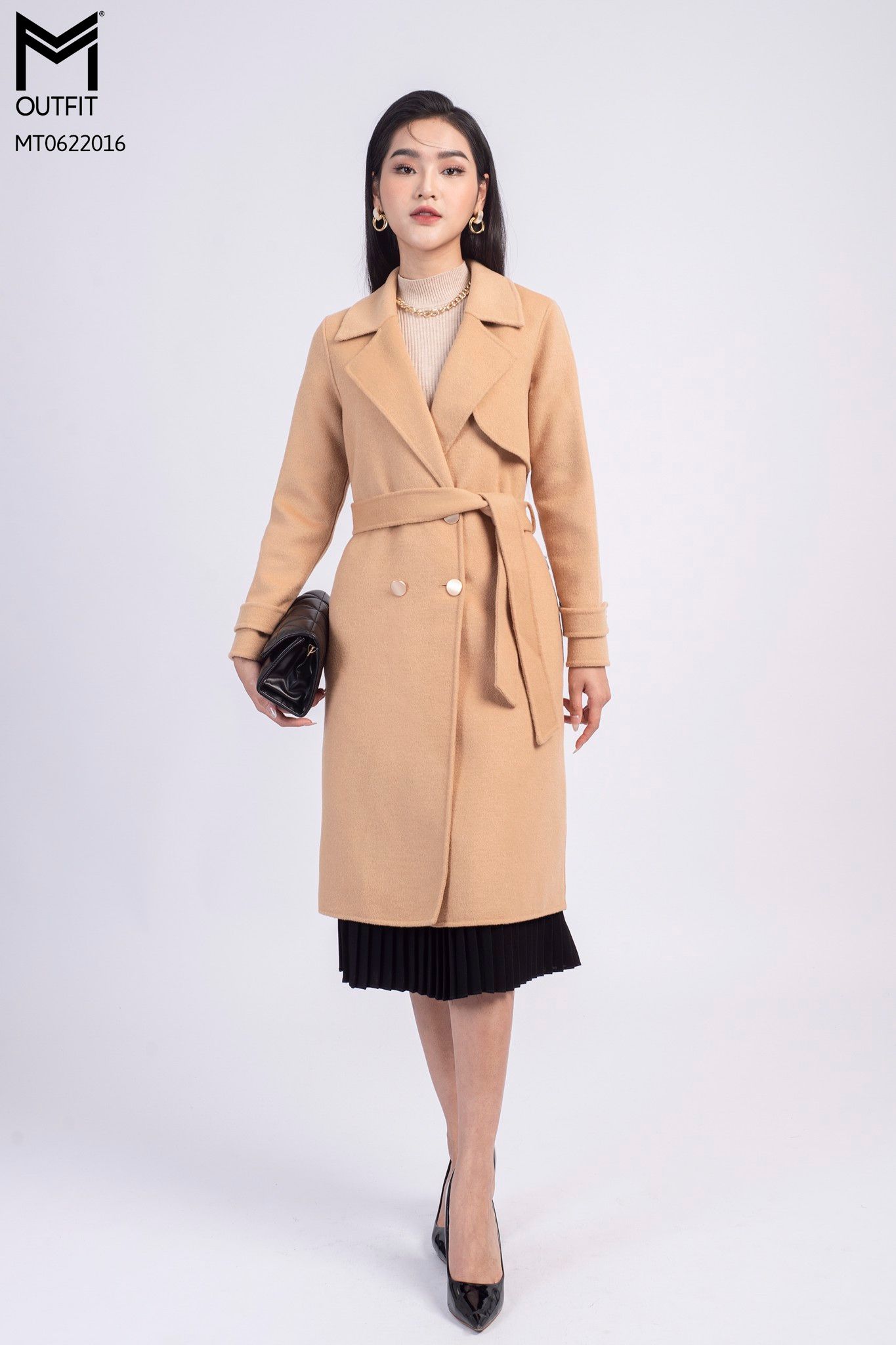 Măng tô dạ lông cừu kèm đai