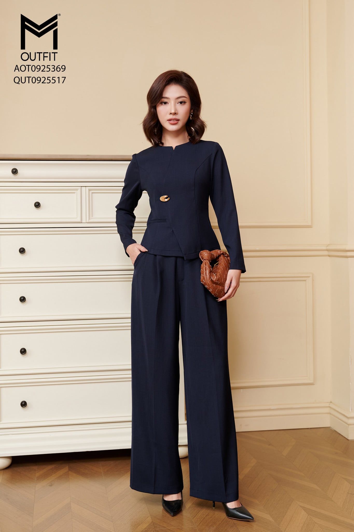 | Đặc điểm | Quần ống suông rộng túi chéo đính cúc kim loại |