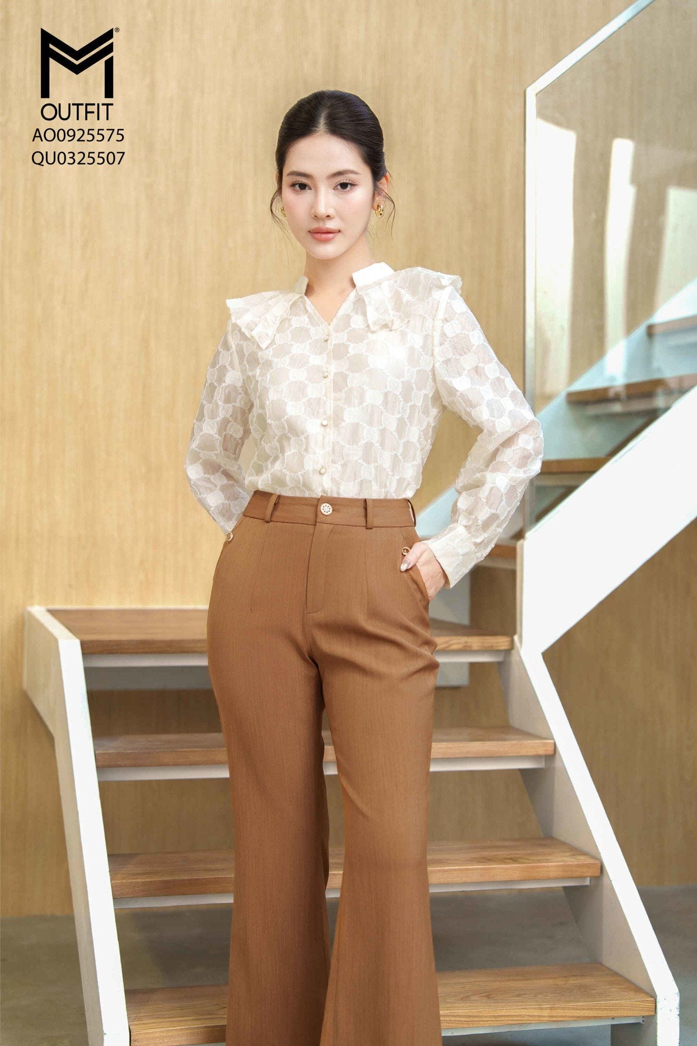 Quần ống vẩy túi đính cúc trang trí mix với áo AO0325335