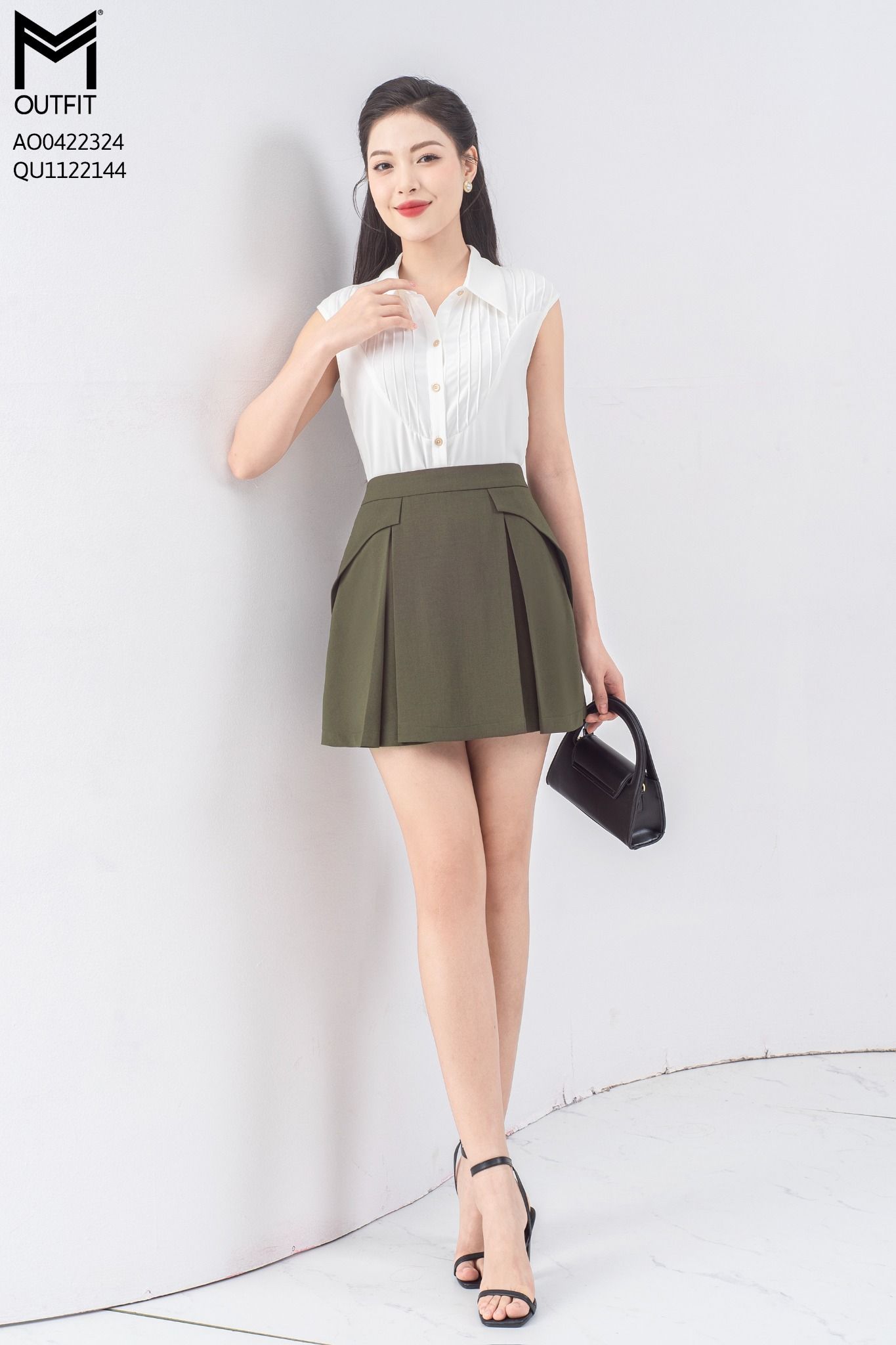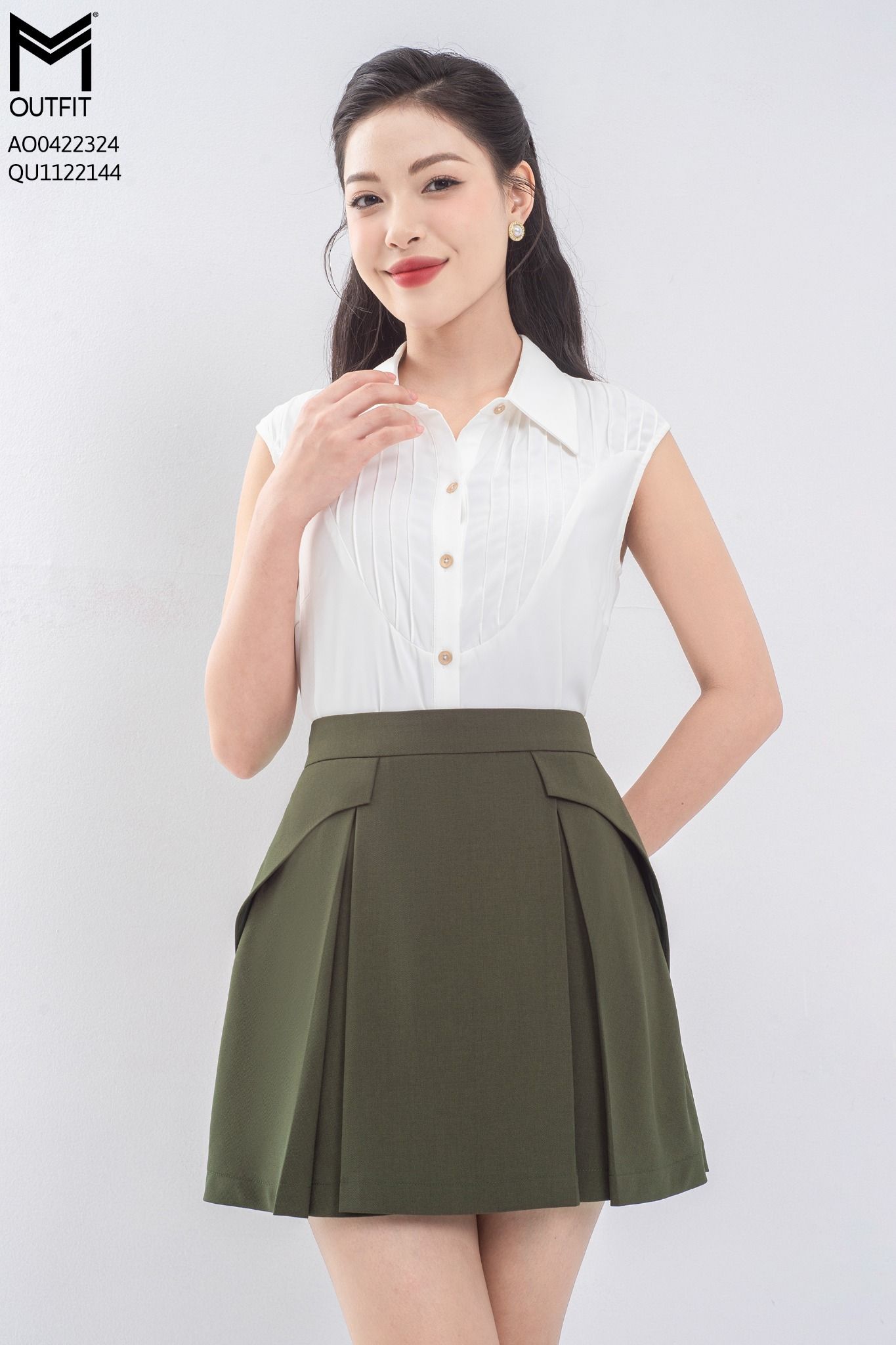 Quần short giả váy, xếp ly, đáp bong