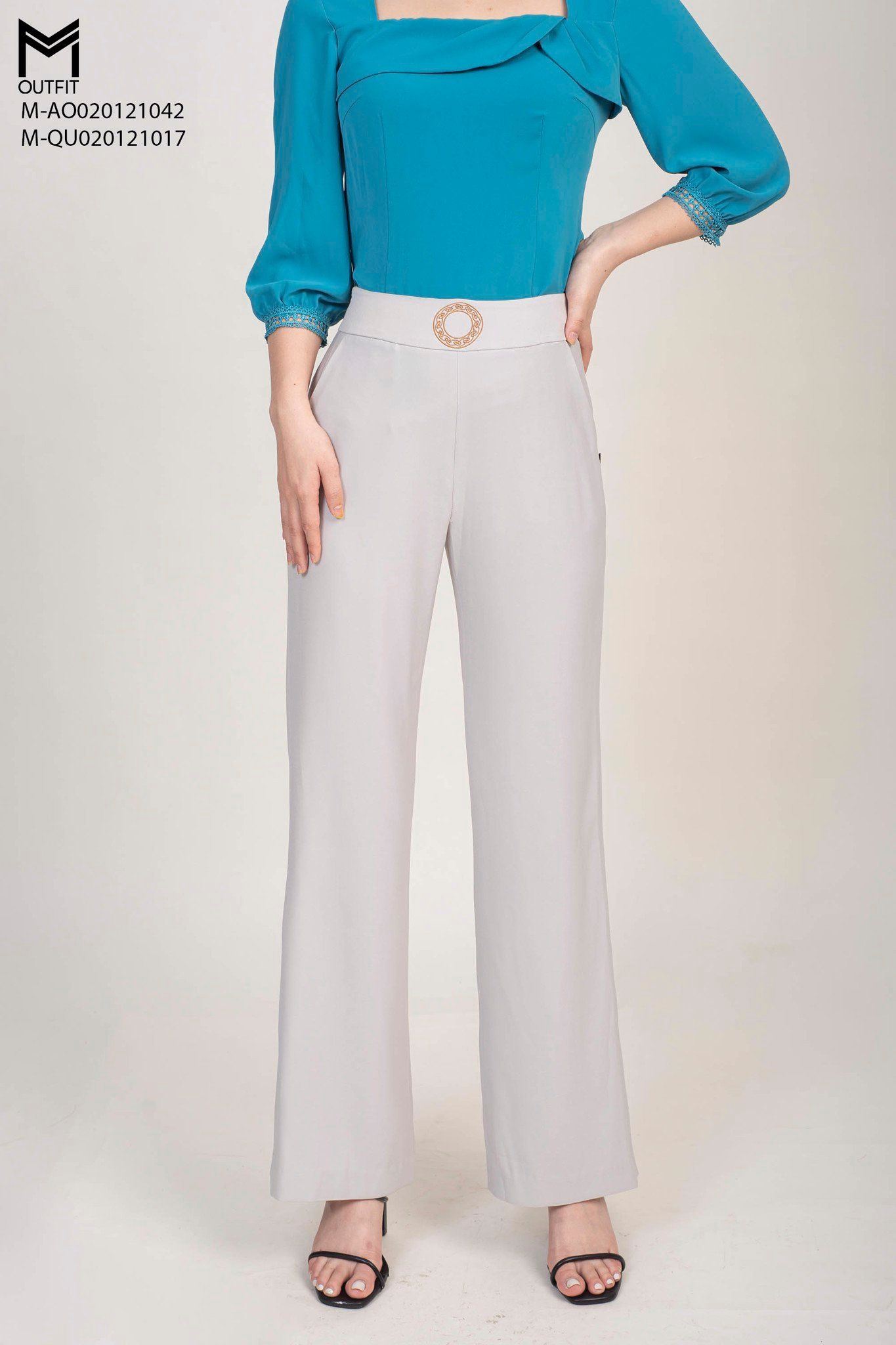 | Đặc điểm | Quần suông dài cạp bản to thêu giả măt đai, khóa sườn. Chất liệu chéo Hàn |