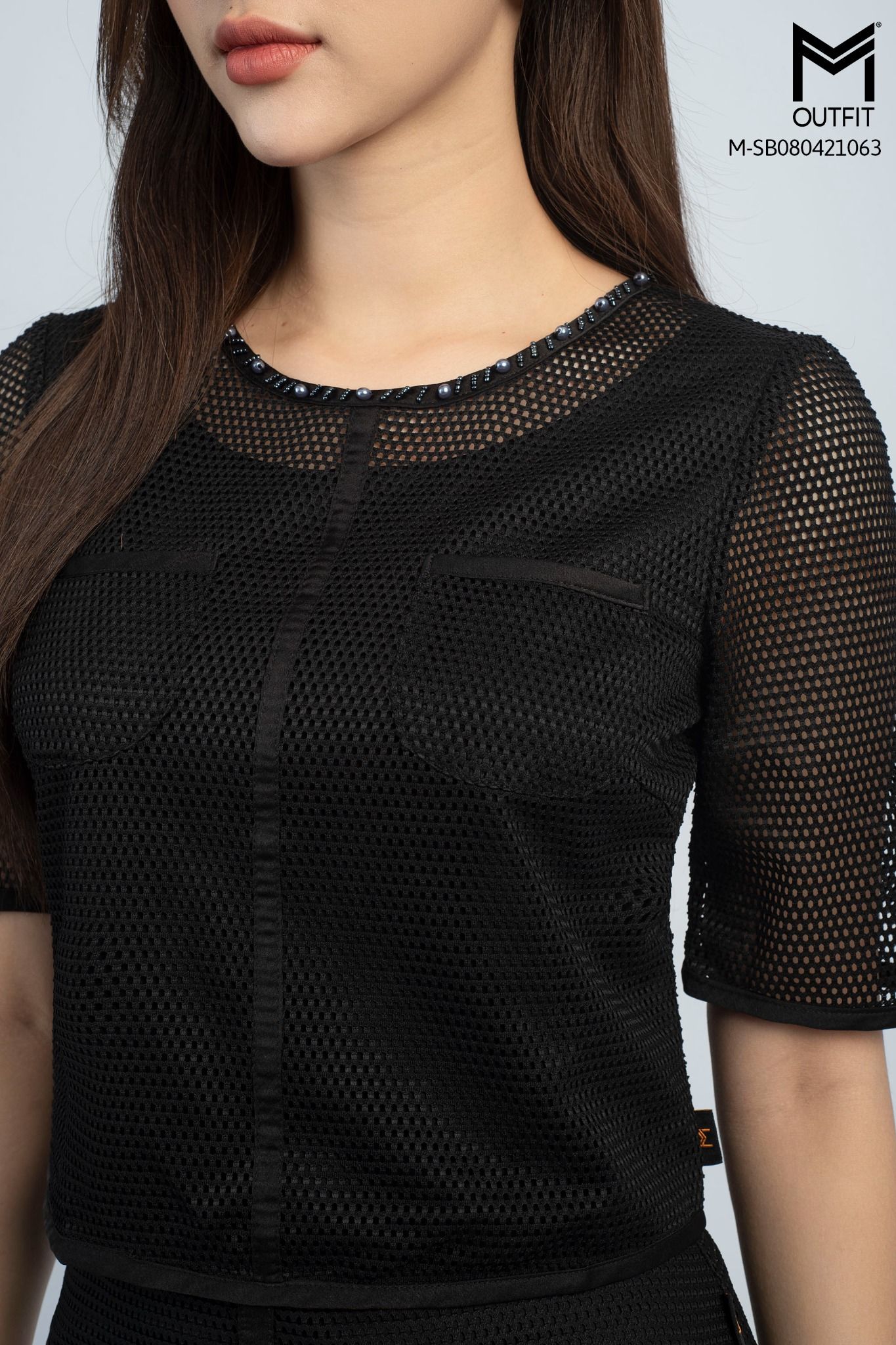 Set bộ áo cao cấp của MM Outfit có sự phối kết hợp giữa áo croptop đính đá viền cổ, tay ngắn cùng chân váy chữ A. Thiết kế tối giản mang lại cho nàng vẻ thanh lịch, hiện đại, phóng khoáng, có thể ứng dụng trong nhiều hoàn cảnh.