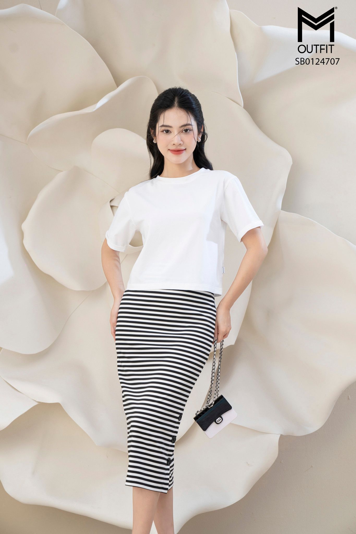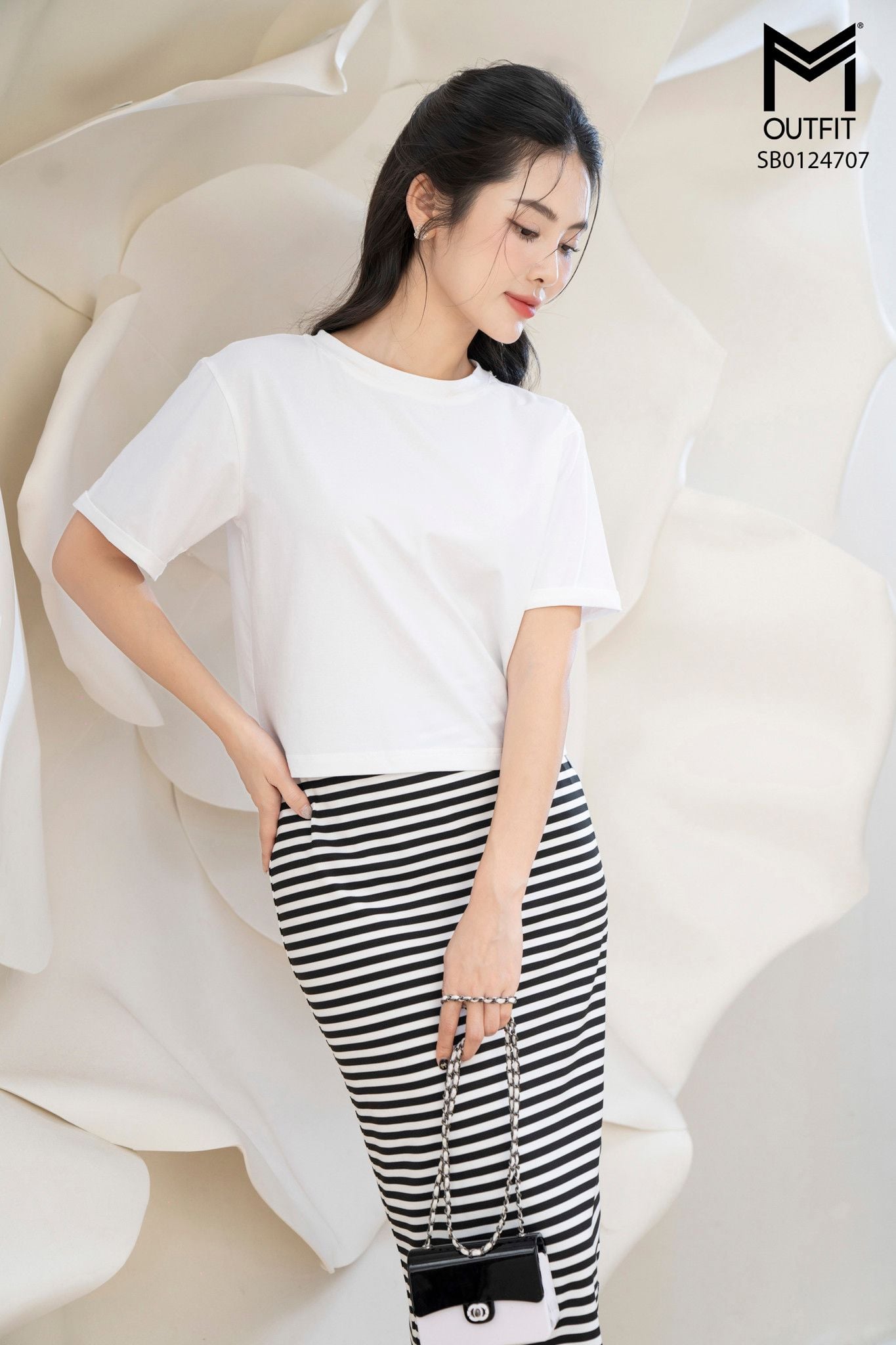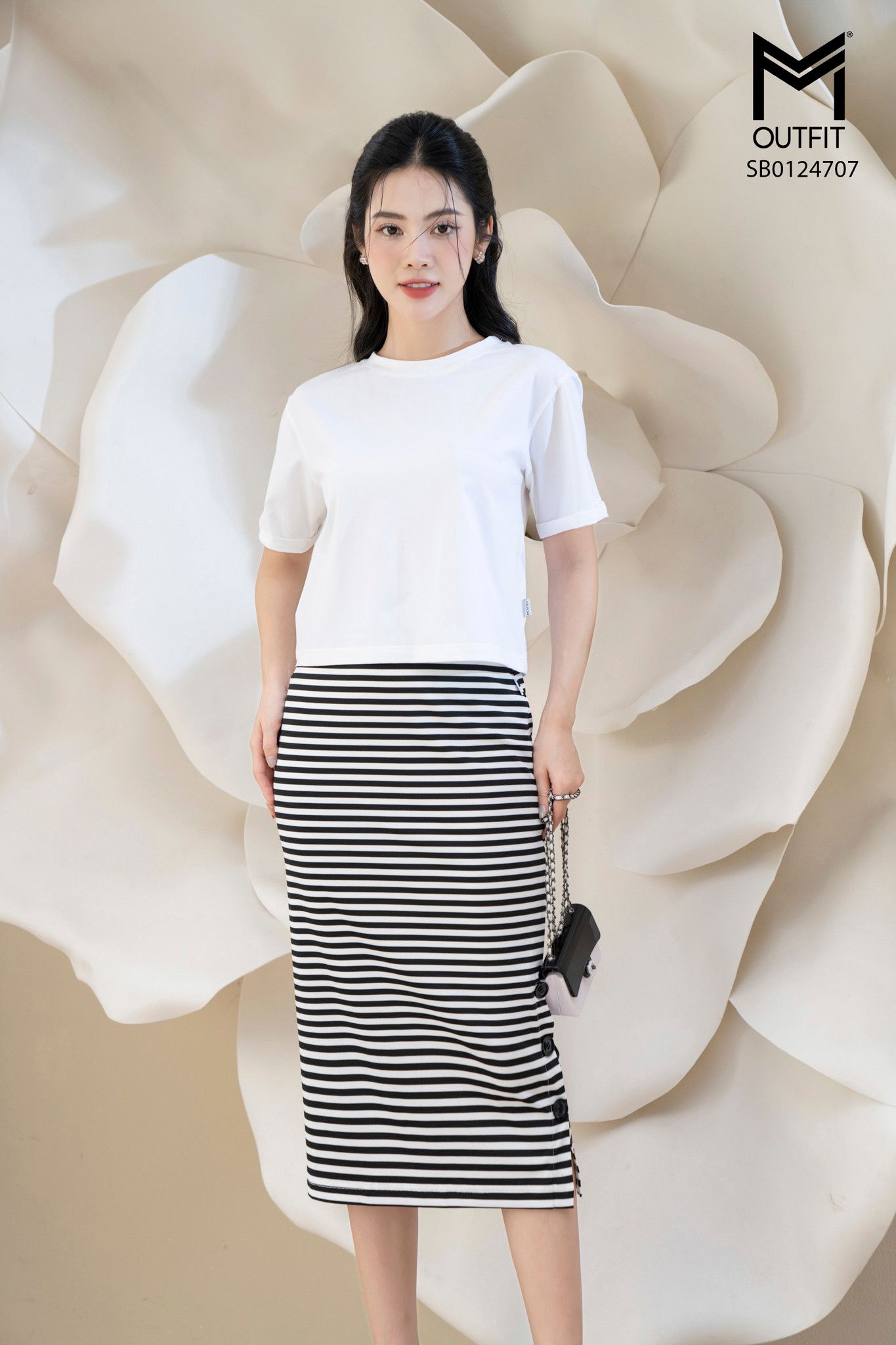 | Đặc điểm | Sét bộ áo croptop và chân váy bút chì kẻ |